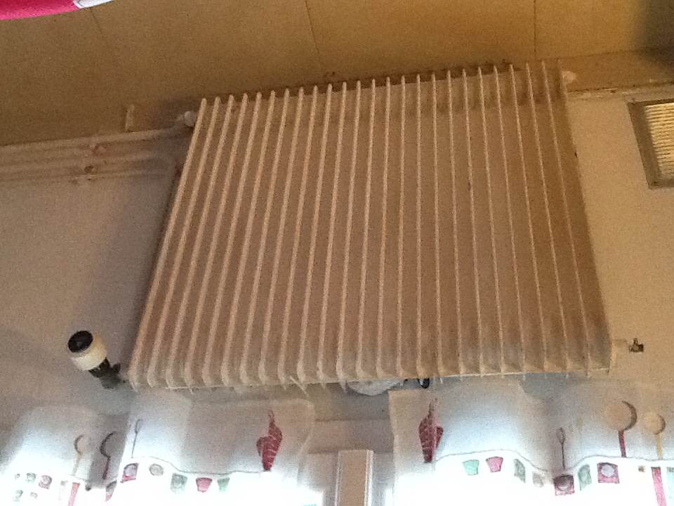 Chaque radiateur, montré dans la photo, mesure 70x70x7cm, a l’air d’etre en acier et chauffe des pièces de volume 3x4x2.7m^3. Je dirai que la puissance du radiateur est environ 1500 Kw mais j’en suis pas sur du tout. Au total j’ai