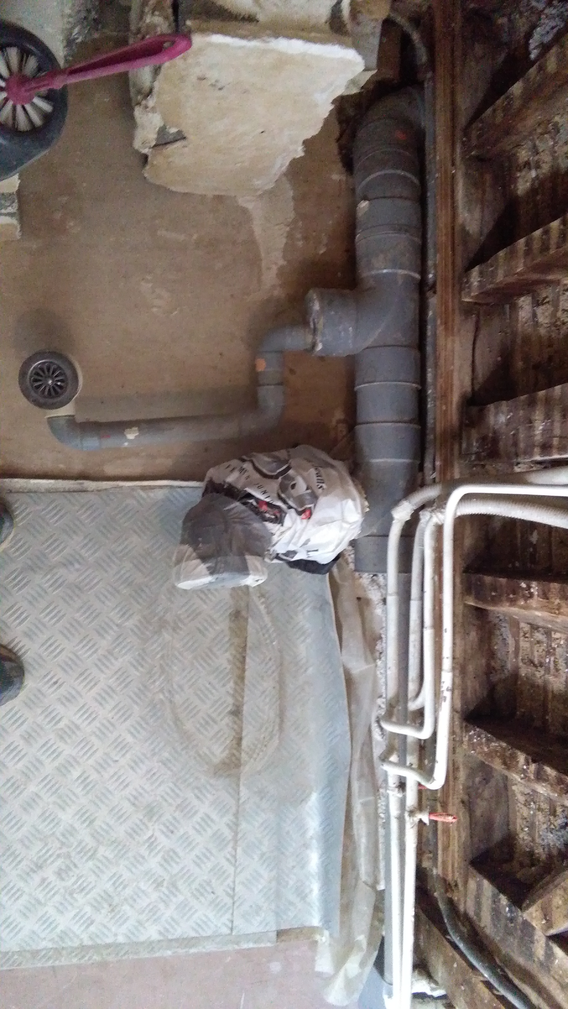 En démontant les équipements de la salle de bain actuelle j'ai découvert une installation qui me surprend (peut être parce que je suis novice me direz vous) - Les évacuations sont en série et rejoignent après la douche l'évacuation commune de l'immeuble