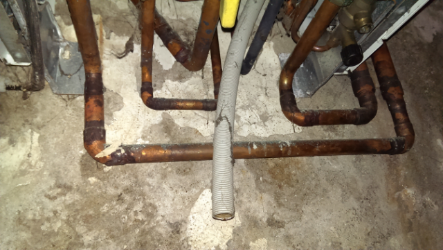 Conséquence : beaucoup beaucoup d'eau coulait au niveau de la chaudière au niveau du tube de vidange gris