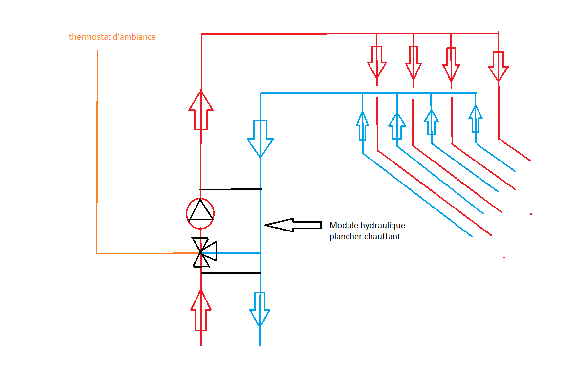 j'ai mis un module sur mon schéma mais si j'ai bien compris il faudrai un ballon tampon pour que le plancher chauffant puisse chauffer en permanence .... ou que le poêle tourne en permanence lol , je vais rester sur des radiateurs partout et la chaleur se diffusera plus vite..... merci