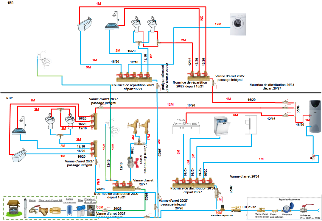 Je veux raccorder cette nourrice, a celle de l’étage qui est en 20/27, il me faut donc le