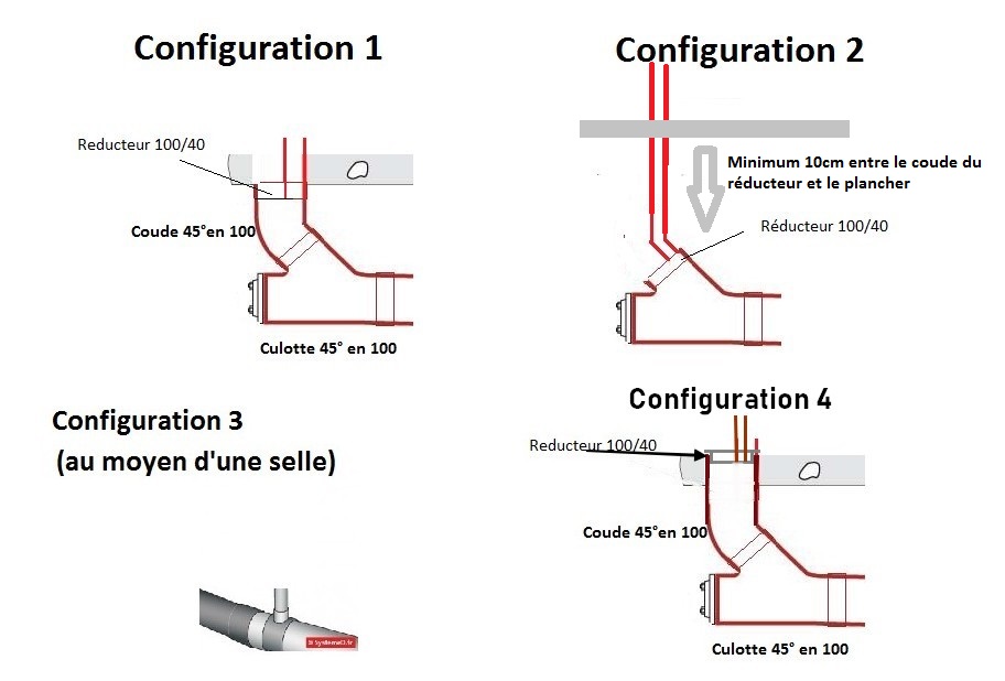 Je vous conseille tout de même de faire monter des tuyaux en 50 en traversé de dalle, réduire seulement au dessus de la dalle.