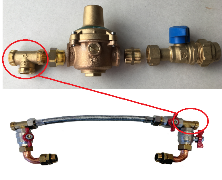 -J'utilises un raccord mâle/mâle entre le robinet d’arrêt principal et le réducteur de pression