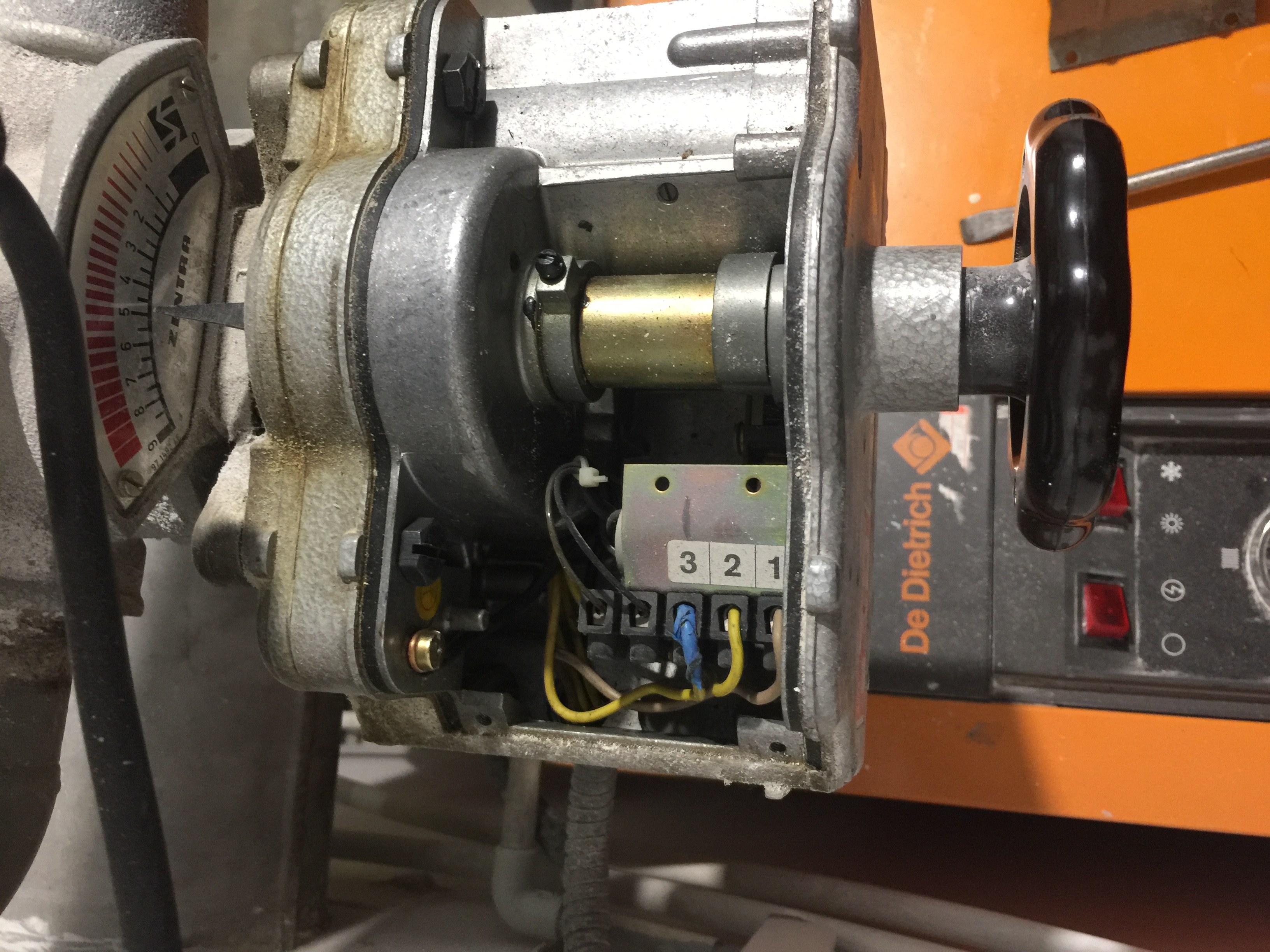 Le servomoteur est déjà branché, on voit l’alimentation a droite et les deux fils pilote qi permettent a la vanne de s'ouvrir ou de se fermer.