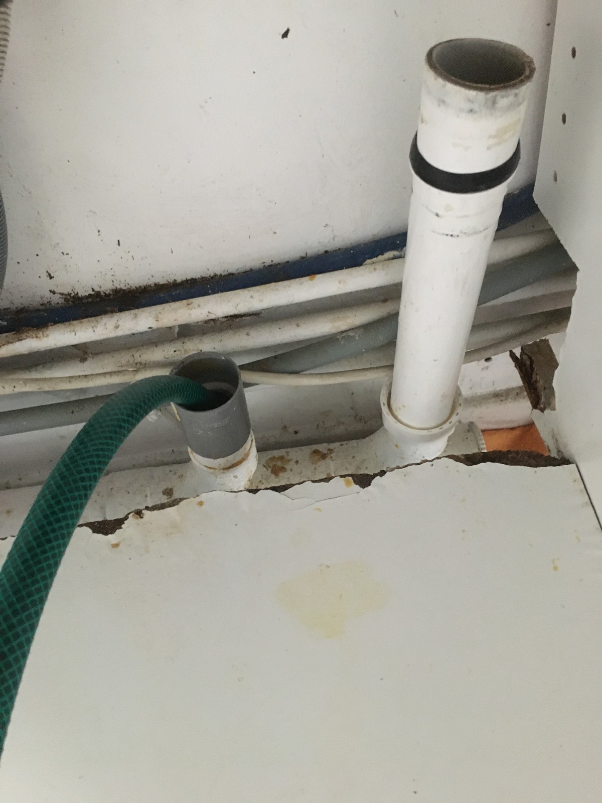 Pour faire des tests j'ai raccordé un tuyau volant (d'arrosage ) au robinet de l'évier. Ainsi j'ai envoyé l'eau directement dans les entrées évacuation du tube central, mais le reflux s'est produit.