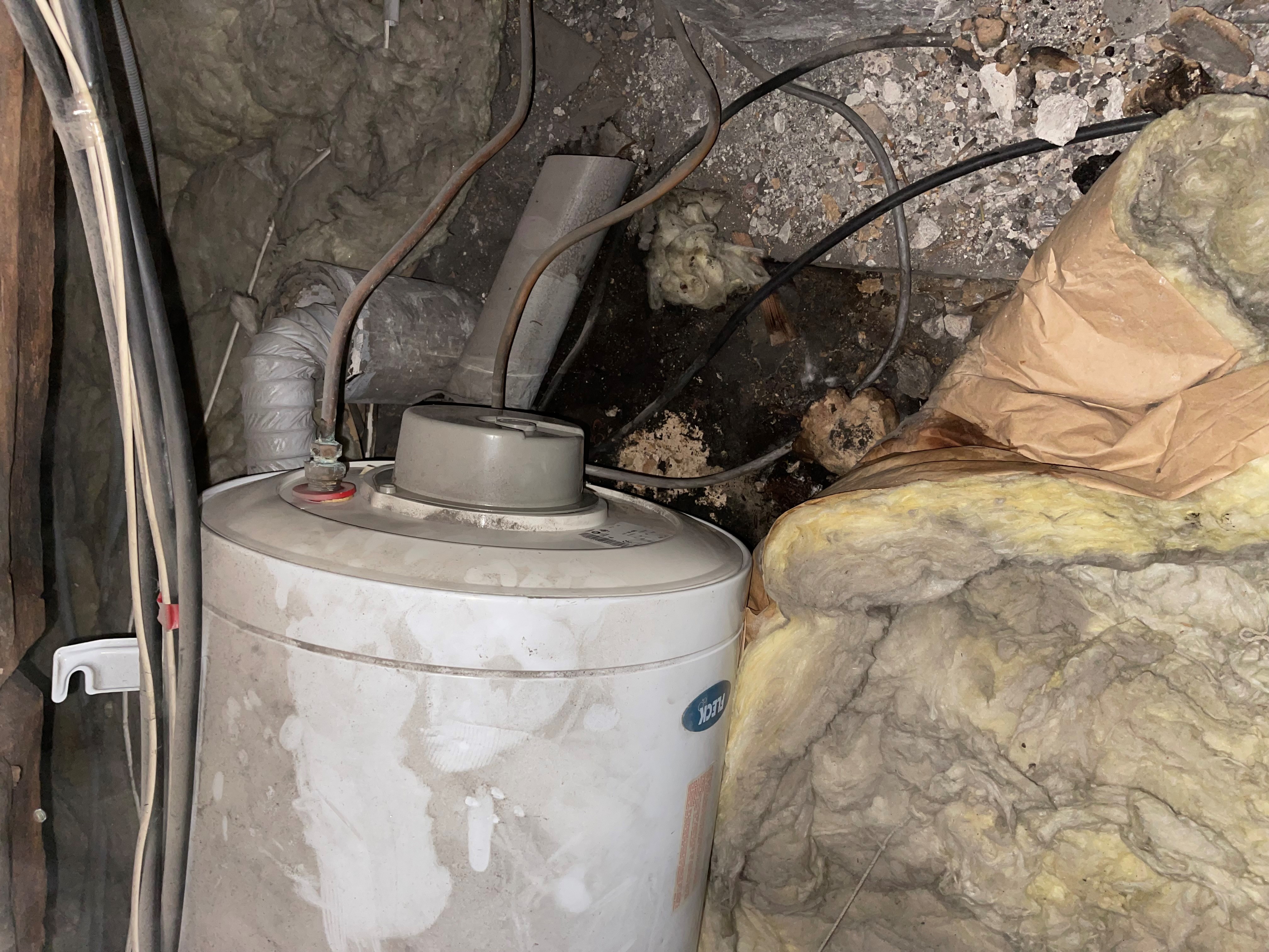 suite à un dégât des eaux, j'ai découvert dans le faux plafond ce chauffe-eau posé à même le sol à l'origine de la fuite.