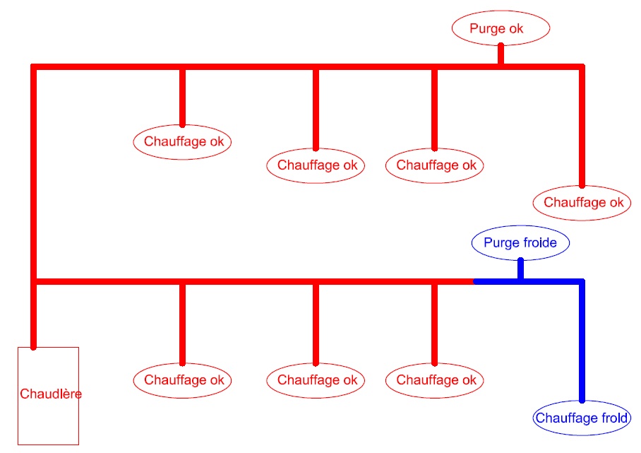 je vais essayé ça demain si j'ai le temps. mon appartement est de plein pied, et les 2 purgeurs que j'ai représenté sur le schéma, sont les purgeurs présents dans les combles.