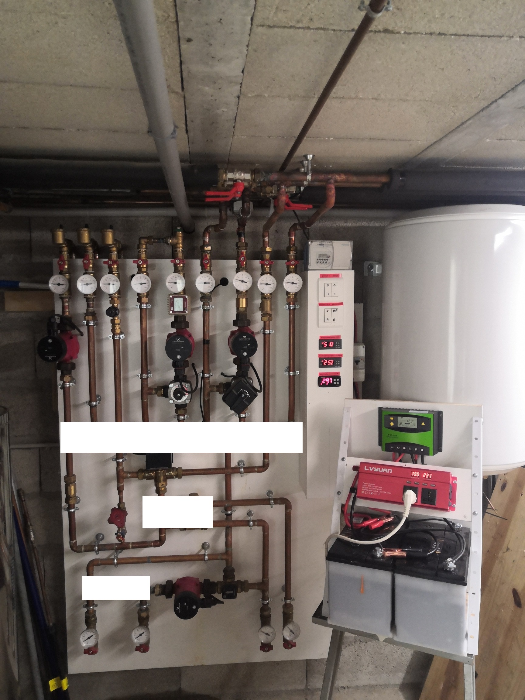 J’ai fabriqué le prototype de ce module pour  tester, principalement le  concept  « réchauffage et stockage des calories via les panneaux photovoltaïques et récupération des calories pour diffusion » qui est le délicat, le reste du fonctionnement est basique.