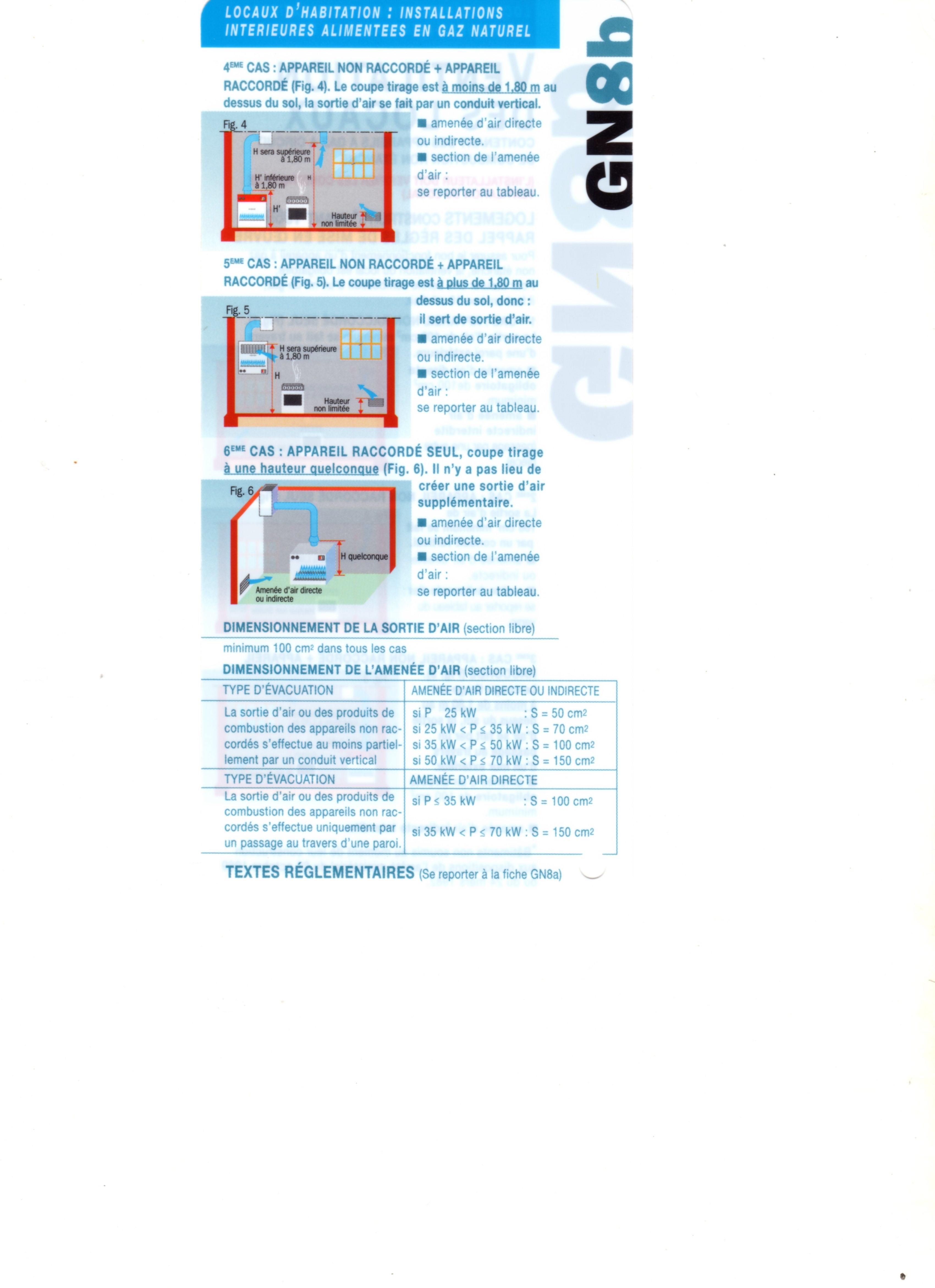 6ème cas, la chaudière est raccordée à un conduit de fumée et il n'y a pas d'appareil (non raccordé) donc il n'y a pas d'autre gaz brulées à évacuer, donc pas besoin de VH? il faut juste une VB pour alimenter le bruleur en air de combustion.