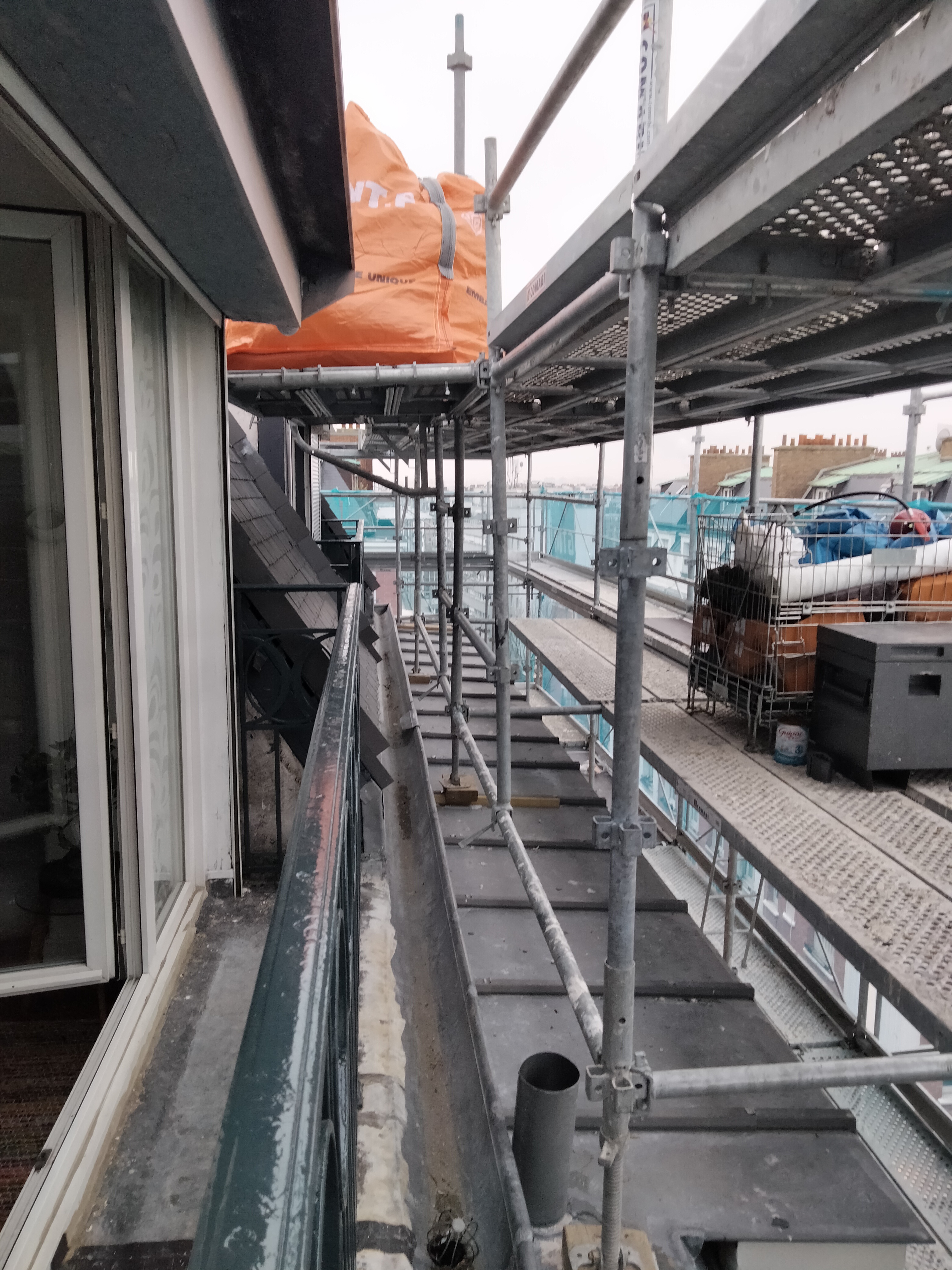 Je précise que mon appartement doté d'un balcon filant est en retrait du reste de la façade, ce qui signifie que la toiture l'est également, aucune possibilité de prolonger le conduit jusqu'au toit.
