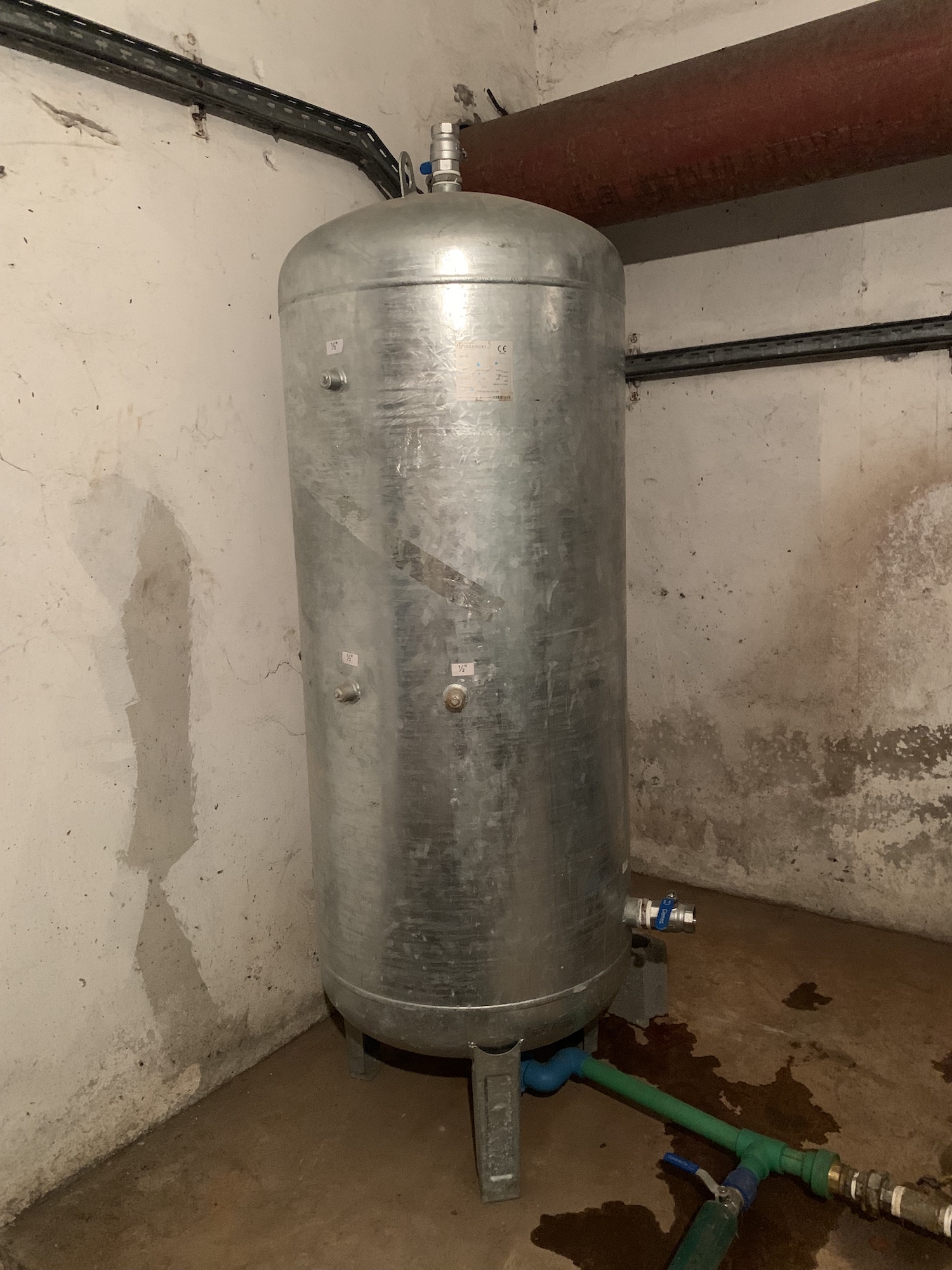 Sauf que, depuis que le ballon a vessie a été a l'origine de la panne des pompes, remplacées depuis, mon predecesseur a mis (en debut d'année) un ballon galvanisé sans vessie à la place du ballon à vessie, pour je ne sais quelle raison quelqu'un lui avait conseillé de le mettre parce qu'il durait plus longtemps, mais on ne savait pas à l'époque qu'il fallait aussi l'alimenter en air.
