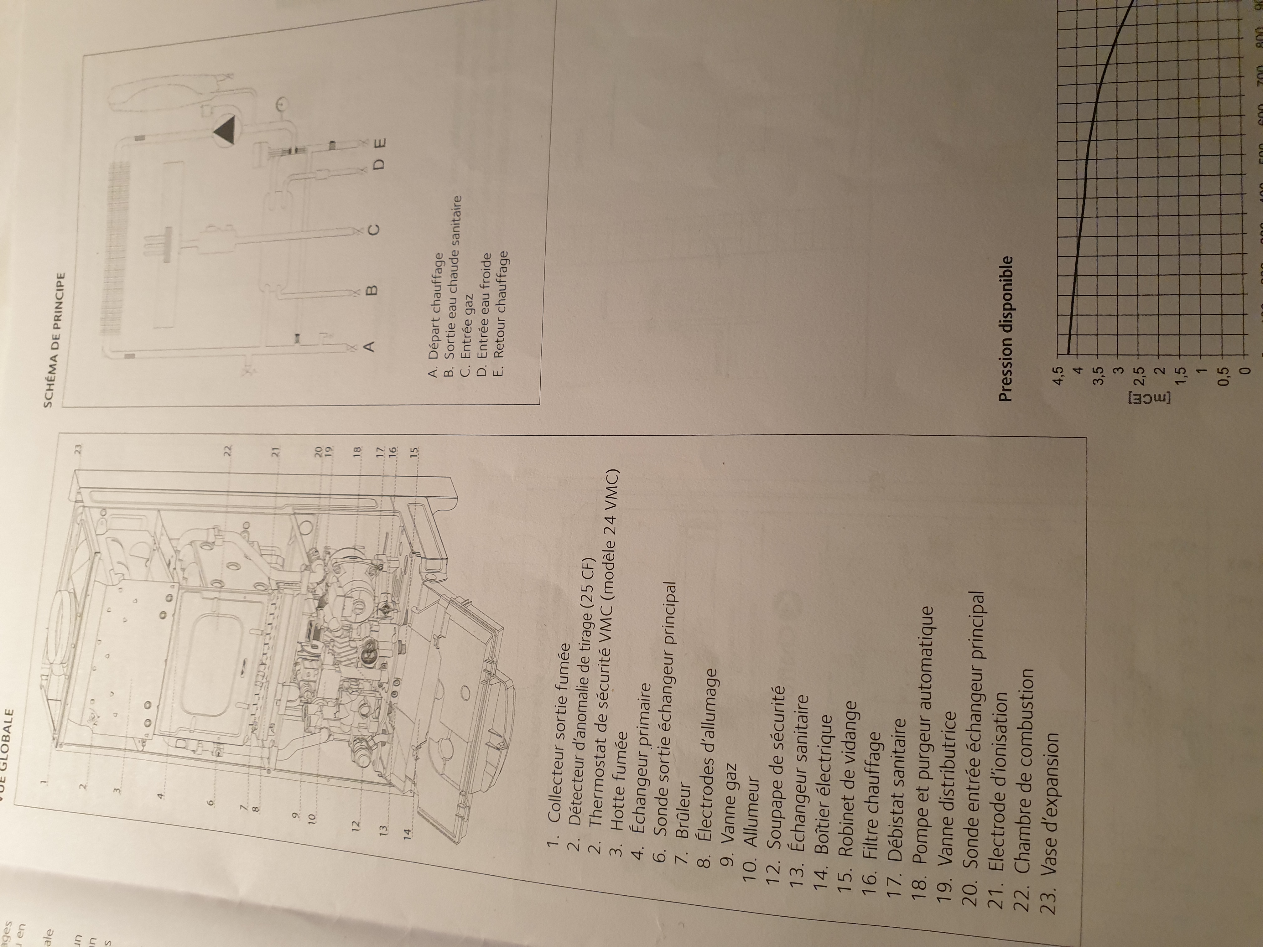 Les vannes: A et E sont le départ et retour de chauffage que vous pouvez fermer pour laisser la chaudière murale  en pression et vidanger le circuit.