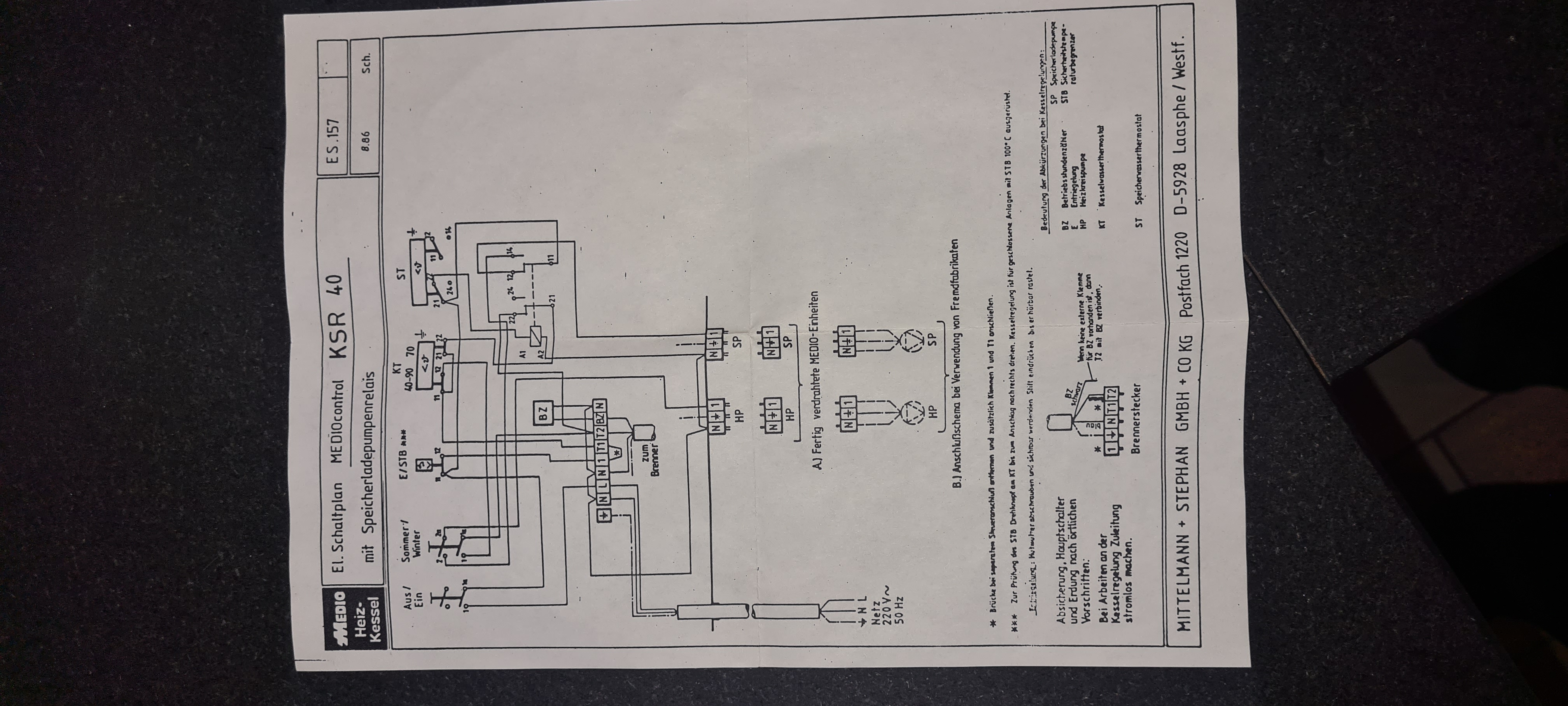 Je ne comprends pas du tout l'allemand mais tout porte a croire que le thermostat peut etre raccordé a la place di pont entre 1 et T1.