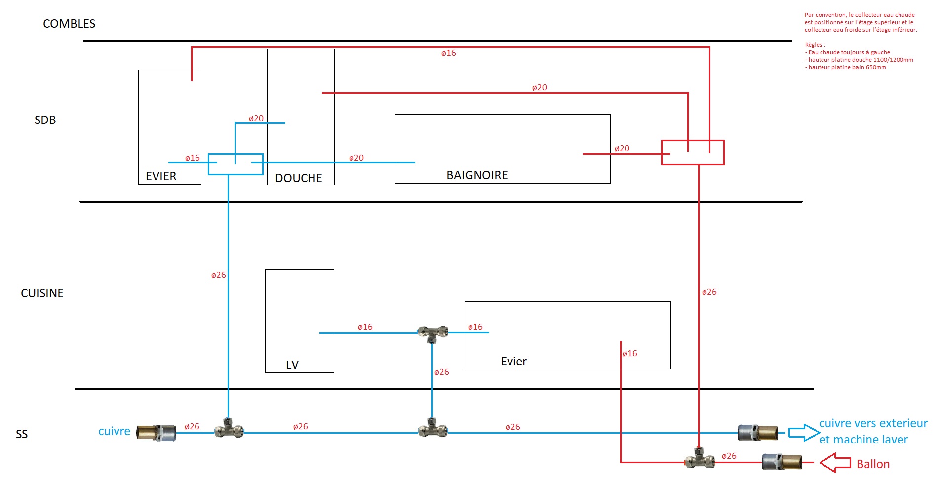 Plombiers Réunis » Installations de plomberie sanitaire (schémas) » Avis sur plan plomberie multicouche