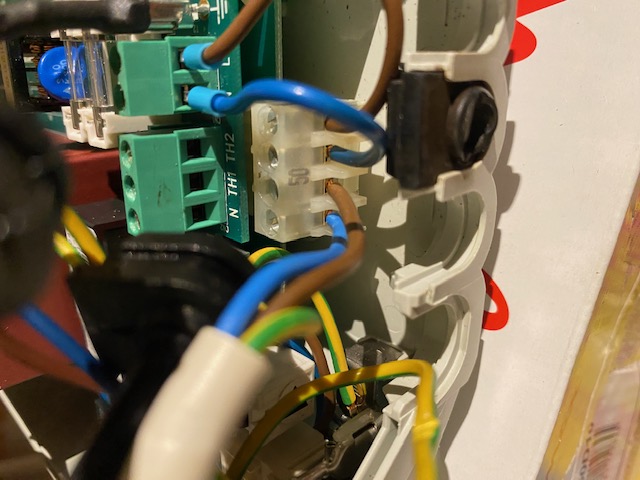 J'ai aussi essayé d'inversé phase et neutre sur la borne à 4 entrées en me disant que le câble arrivant du mur était aussi avec la phase et le neutre inversé mais même résultat.