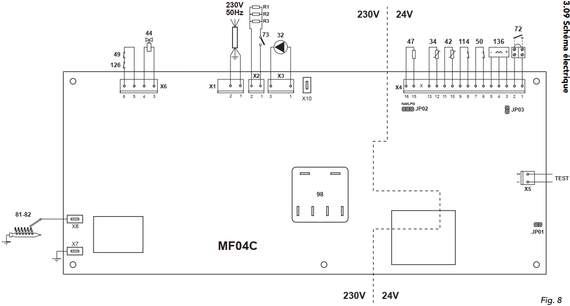 La carte électronique de la chaudière n'est pas la meme que celle présentée dans le manuel de la chaudière.