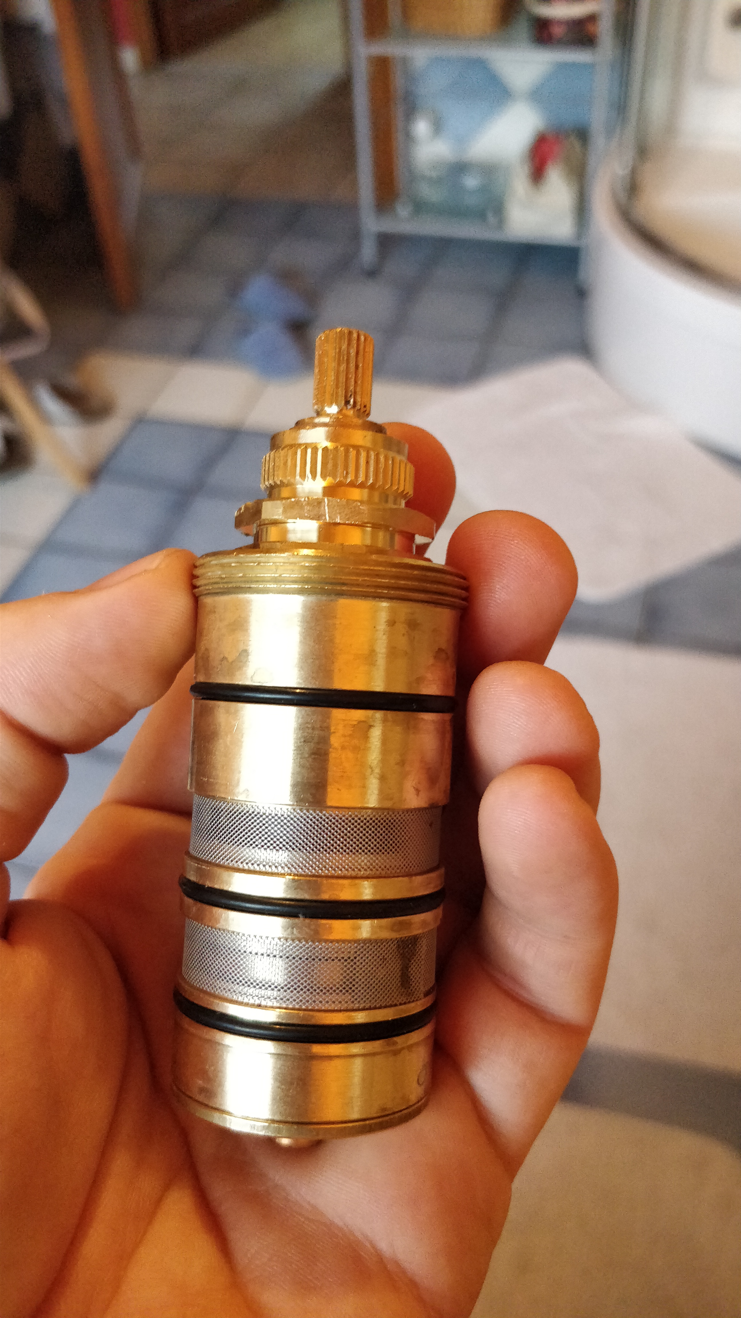 En voulant retirer la cartouche thermostatique d'une douche JEDO, cette dernière s'est descellée, la partie qui mitieg est sortie sans difficultés mais la seconde partie est bloquée.