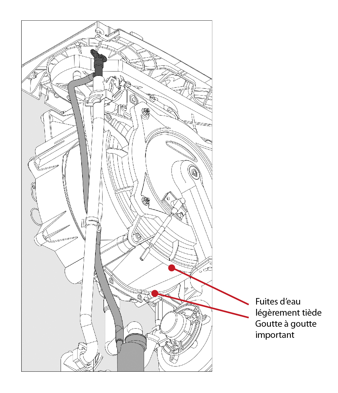 Quelques minutes après la remise en route je m'aperçois de fuites importantes au niveau du gros truc rond métallique voir image
