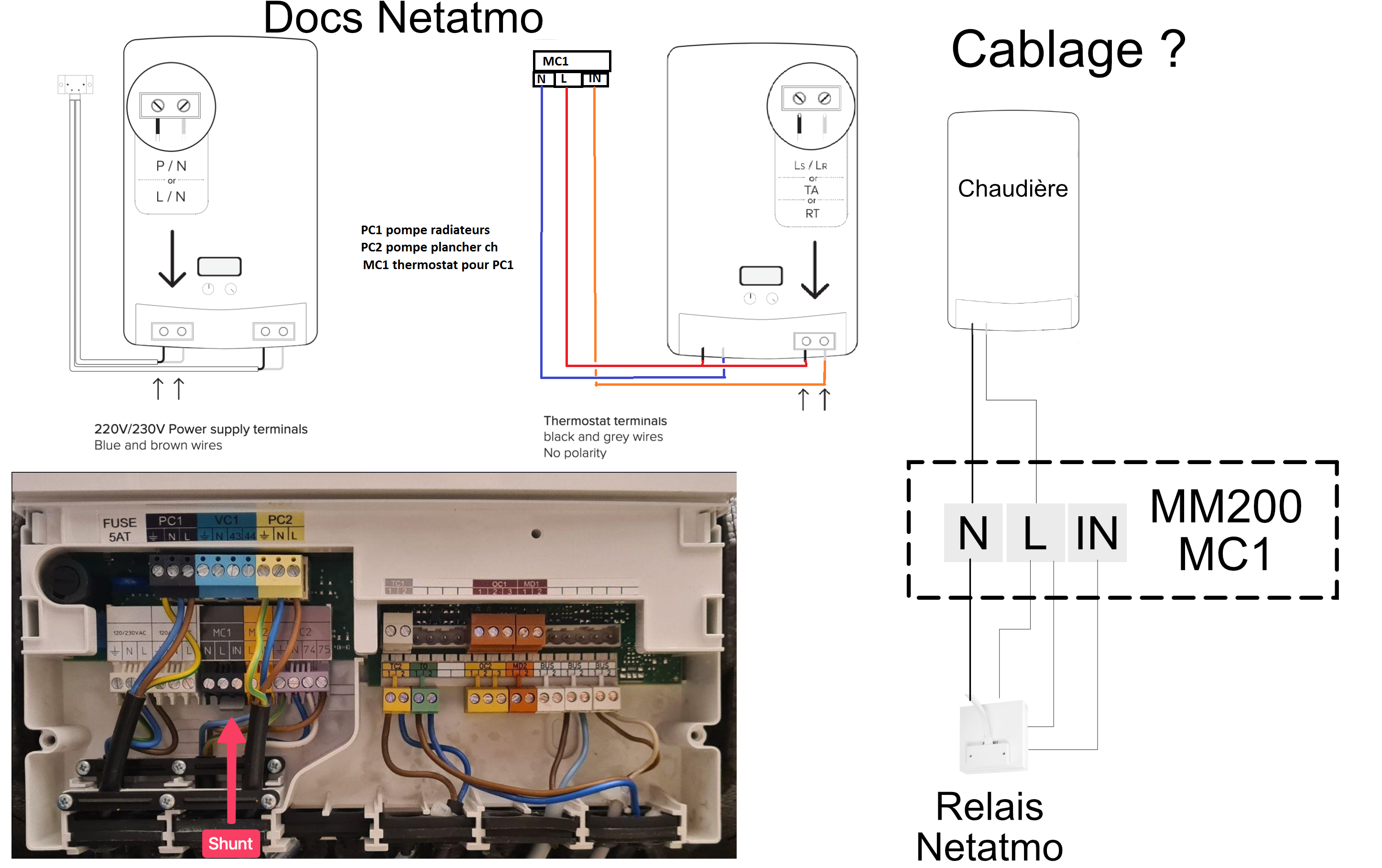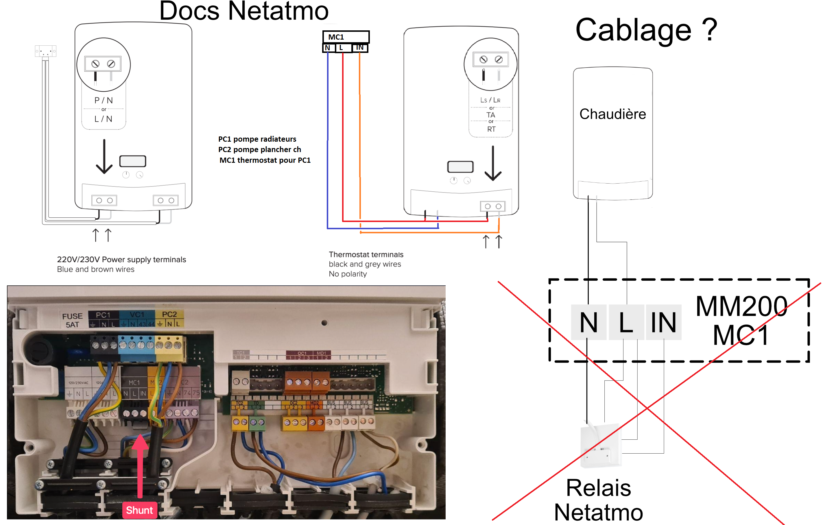 En mettant en coupure le MC1 avec le relais Netatmo, cela met en défaut ce circuit et le thermostat d'origine se met en erreur (le CR100).