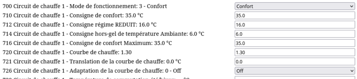 En regardant la façon dont a été paramétrée la chaudière après l’installation du plancher chauffant et après avoir installé un module BSB-LAN qui me permet de lire en temps réel (sur le bus BSB) tous les paramètres de la chaudière je me pose pas mal de question sur la configuration retenue et le réglage de la chaudière. Du point de vue de l’occupant, la régulation du RdC est OK mais celle du 1er est totalement hasardeuse : les radiateurs des chambres doivent être régulés par leur tête thermostatique et ceux des SdB doivent être fermés la plupart du temps car ils chauffent beaucoup trop lorsqu’ils sont ouverts en permanence. J’observe également que la température de départ et celle de retour du circuit 1 sont très élevées ce qui ne doit pas faciliter la condensation...