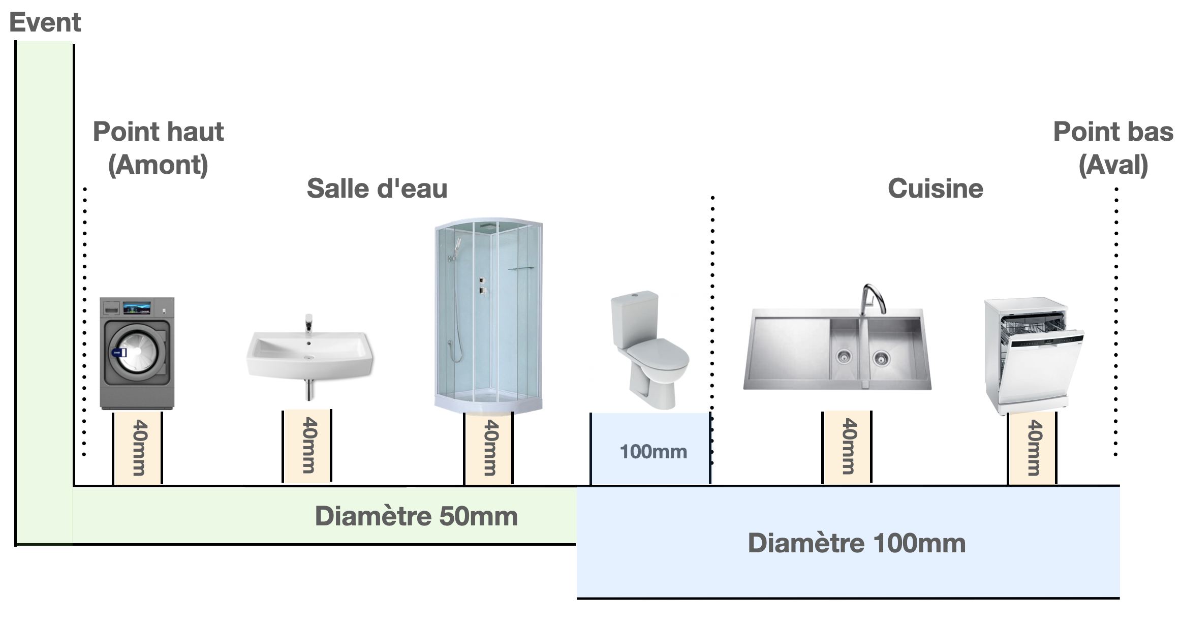 En tout cas, tout le monde à l’air d’accord sur le fait qu’un évent de 40mm suffit et ça me rassure ! Je pourrai aussi rajouter l’évent de 80 en aval du WC.