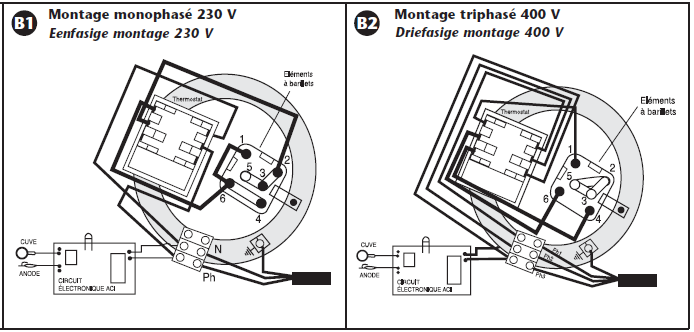J'ai un chauffe-eau De Dietrich branché en triphasé que je dois brancher sur du monophasé.