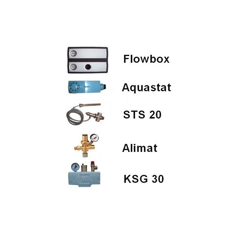 1 FLOWBOX : Garantie une bonne température:1 pompe, 1 vanne trois voies thermique, 1 bye-pass, 2 thermomètres, 2 vannes à sphère.