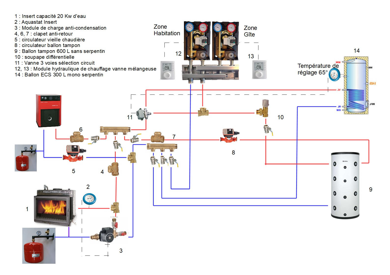Re : Schéma insert bouilleur et chaudière gaz pour 2 réseaux de chauffage