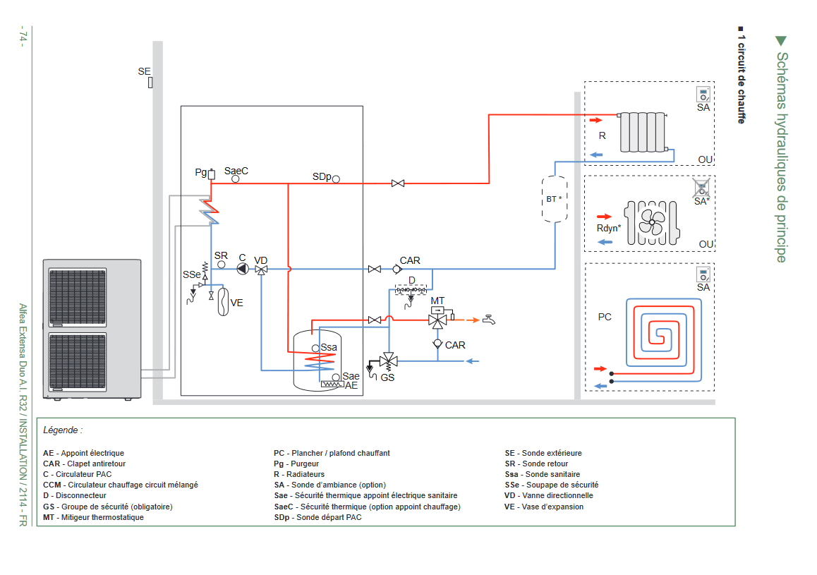 Je me suis basé sur les schéma fournis par le fabricant de la PAC (ALFEA EXTENSA DUO A.I. 3 R32) et ils préconisent un disconnecteur (type C.A je suppose), est-ce que c'est nécessaire selon vous ? Faut-il rajouter d'autres éléments (filtre à tamis, degazeur, ...) ?