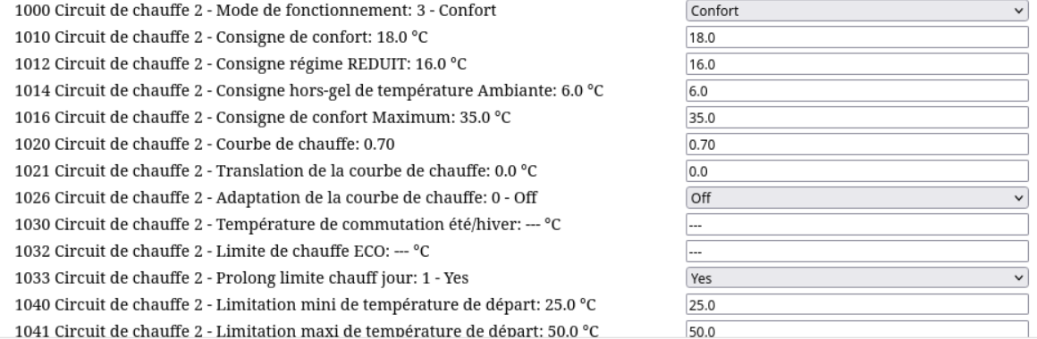 En regardant la façon dont a été paramétrée la chaudière après l’installation du plancher chauffant et après avoir installé un module BSB-LAN qui me permet de lire en temps réel (sur le bus BSB) tous les paramètres de la chaudière je me pose pas mal de question sur la configuration retenue et le réglage de la chaudière. Du point de vue de l’occupant, la régulation du RdC est OK mais celle du 1er est totalement hasardeuse : les radiateurs des chambres doivent être régulés par leur tête thermostatique et ceux des SdB doivent être fermés la plupart du temps car ils chauffent beaucoup trop lorsqu’ils sont ouverts en permanence. J’observe également que la température de départ et celle de retour du circuit 1 sont très élevées ce qui ne doit pas faciliter la condensation...
