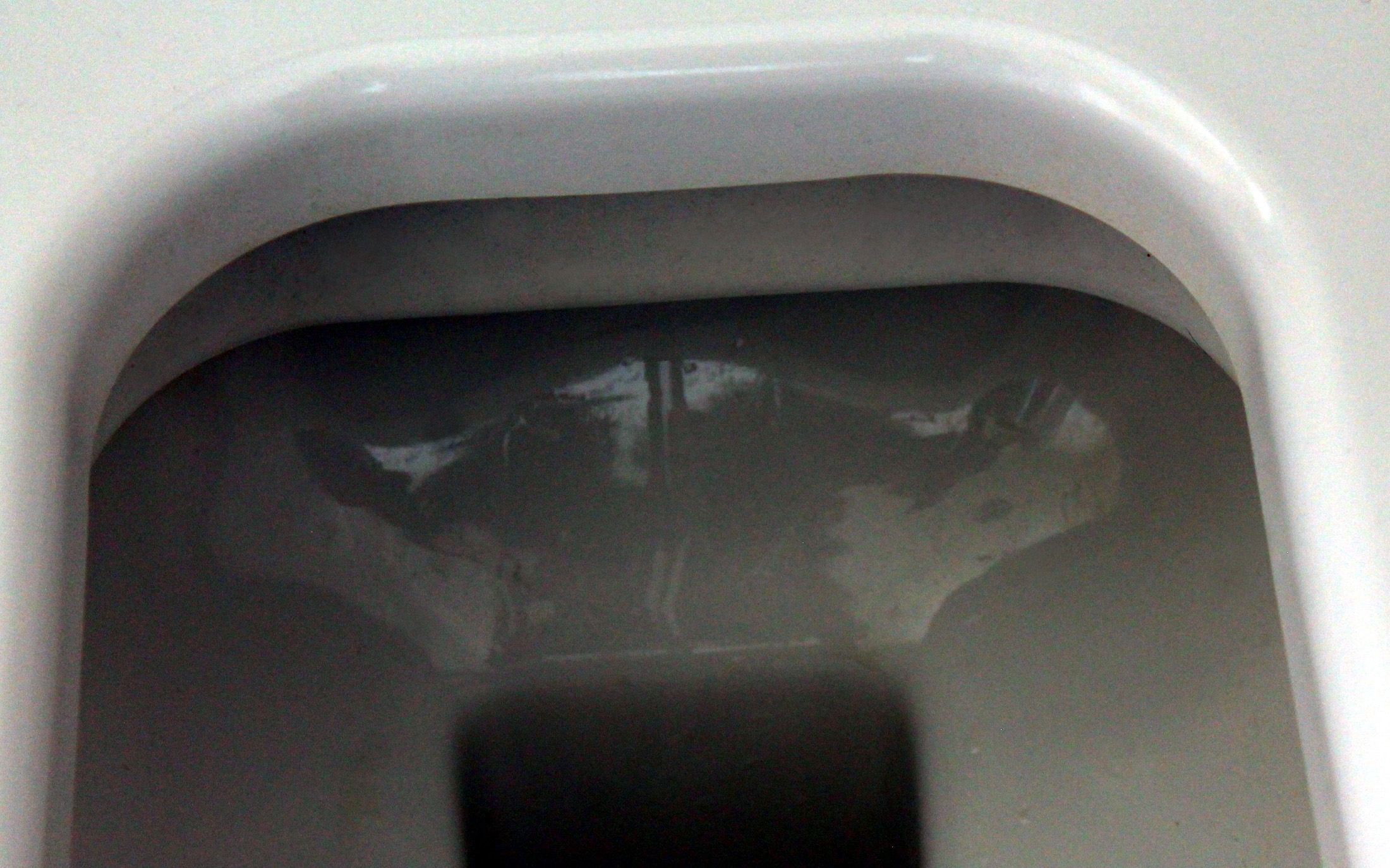 Fuite 1 : fuite observée au niveau de la cuvette des WC. Débit approximatif : 1 goutte par seconde.
