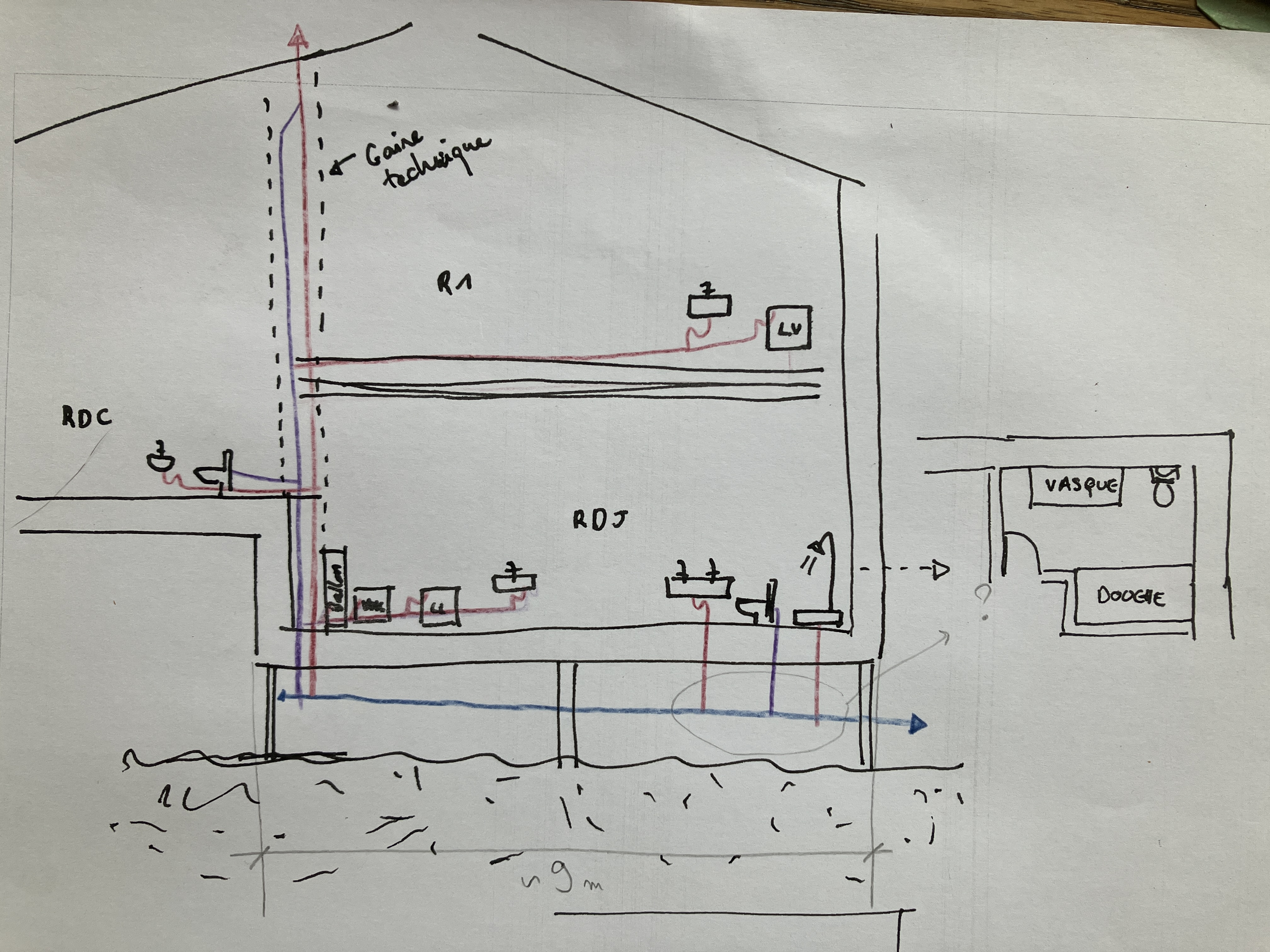 - Au R1 et RDC pas de soucis je pense. Le collecteur d'appareil est un peu long en R1 mais ne dépasse pas les 10m, et les WC du RDC sont tout proches.