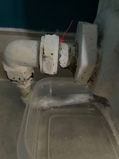 Pour le moment je met un petit bac sur le raccord pour récolter chaque jour l'eau écoulé. (l'équivalent d'un dé à coudre par jour)