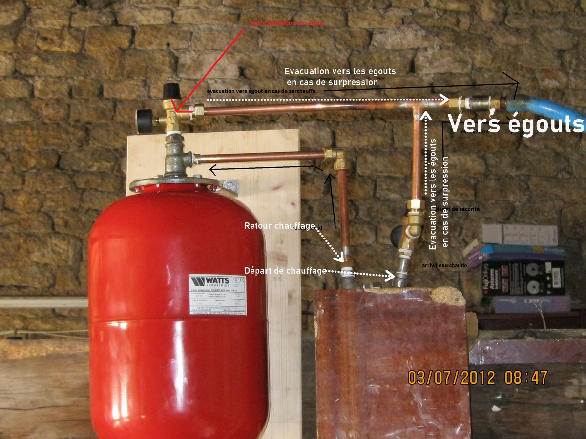 Si le clapet( froid ) au point 2 s’ouvre en cas de pression trop fort part vers le point 1 (égout )