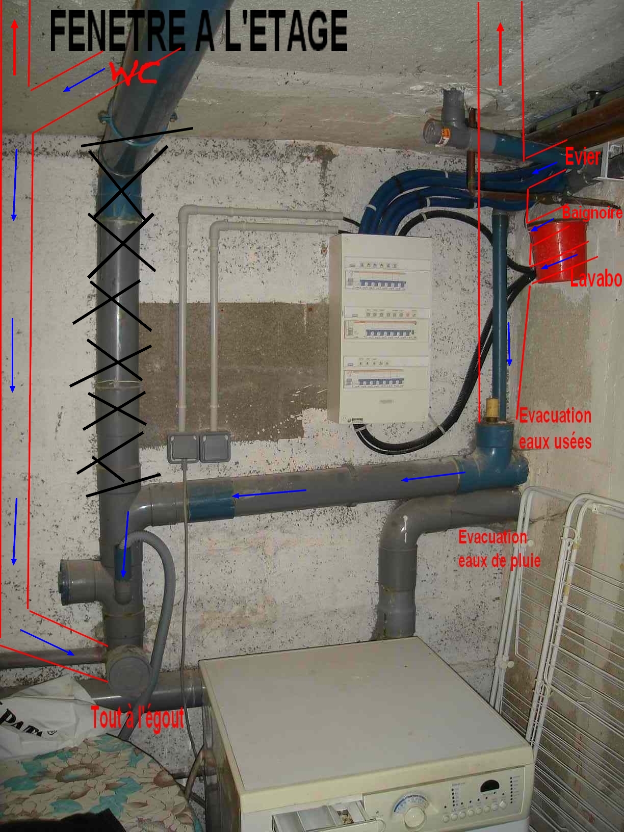 Le tuyau de diam 100 sur la gauche est celui des WC,
