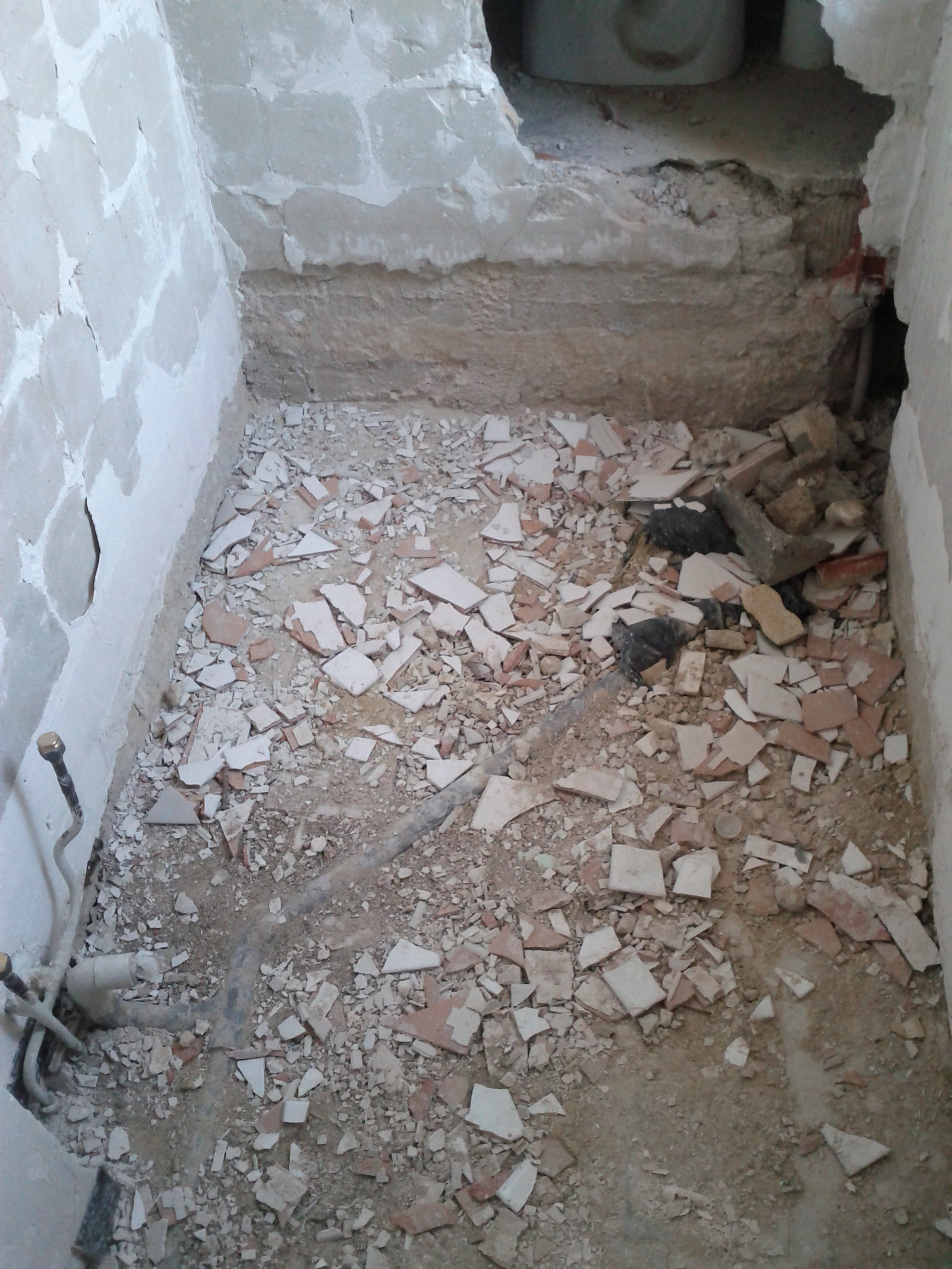 - L'ancien WC est derriére la paroi, mais sur une chappe d'au moins 1 métre que j'ai éventré pour mettre à nu en partie l'évacuation.