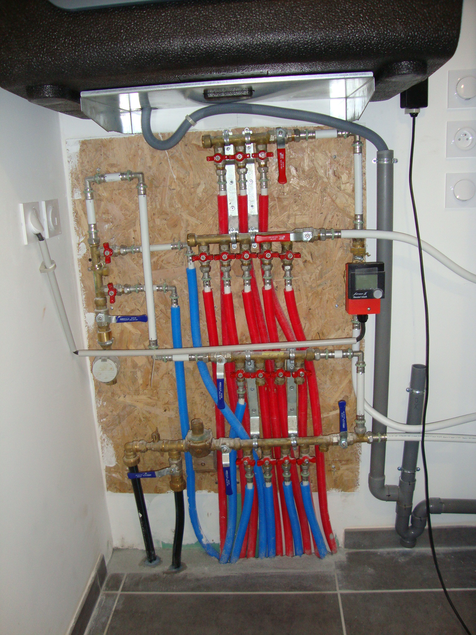 la nourrice sur la gauche est l'eau de pluie (WC et lave linge) mais pour l'instant pas de cuve c'est pour ça qu'elle est alimentée par la nourrice eau froide