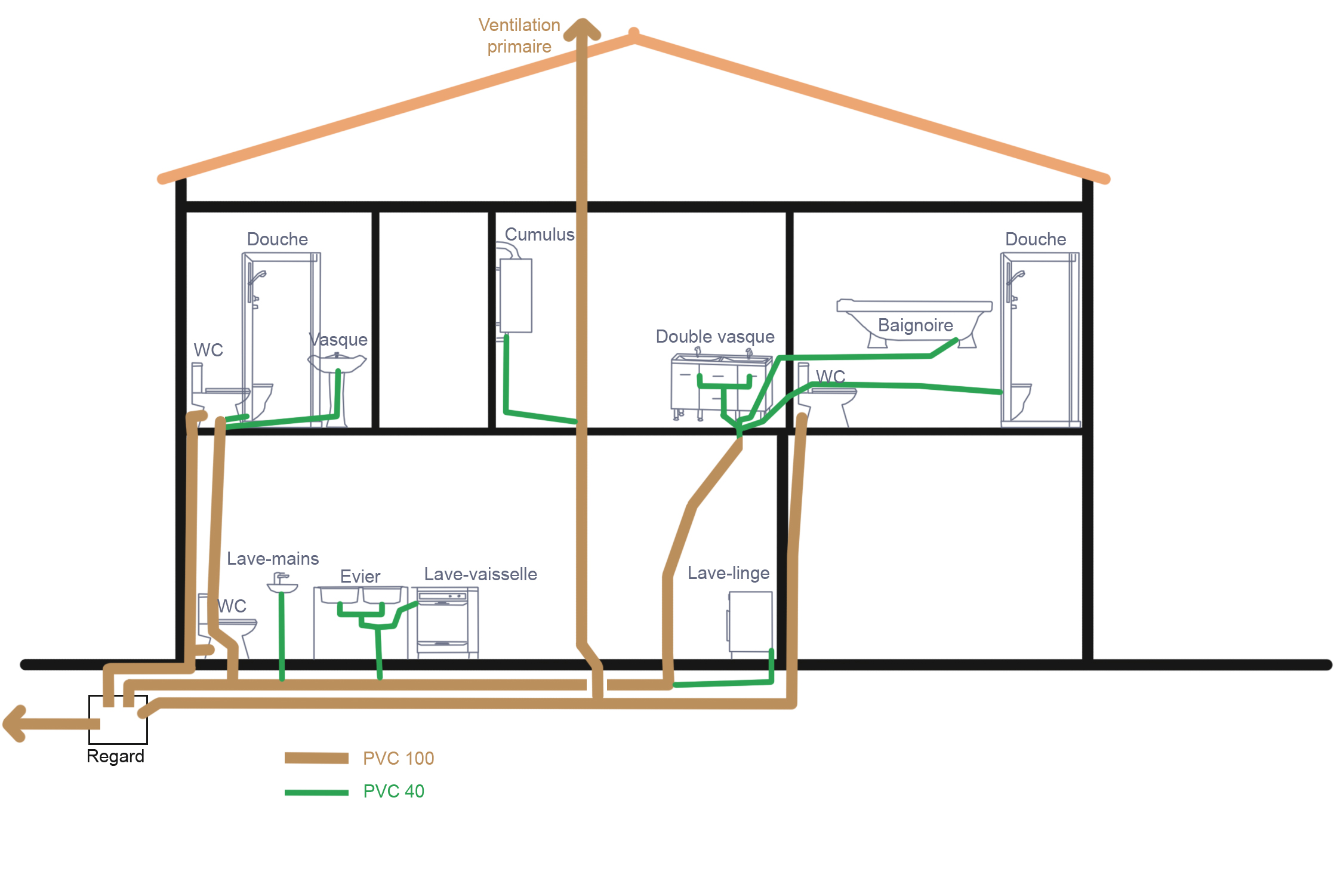 Je reste toujours avec les deux réseaux séparés, la différence par rapport à avant vient du fait que je place la ventilation primaire sur l'évacuation des WC au lieu de la placer sur l'autre évacuation.