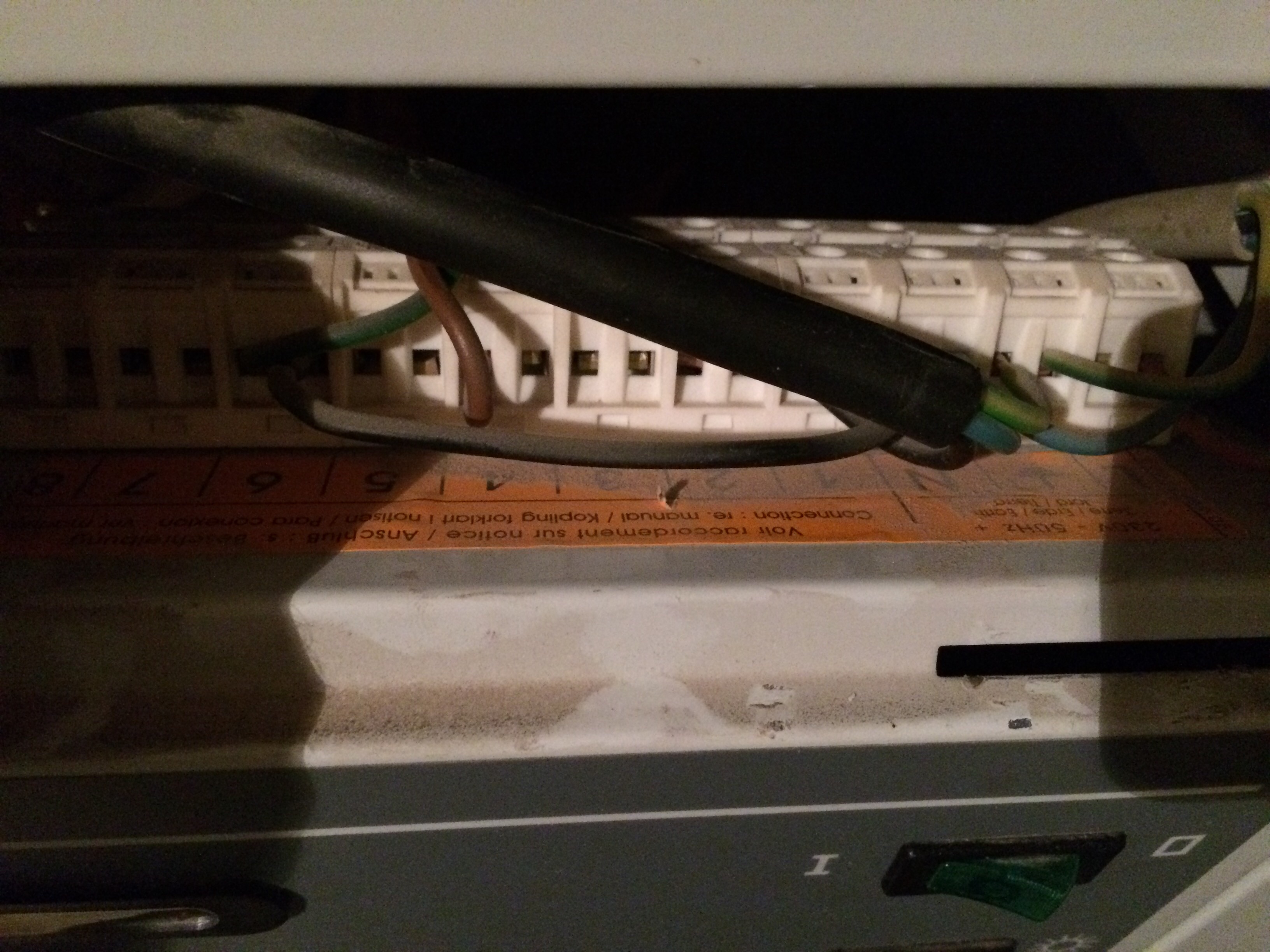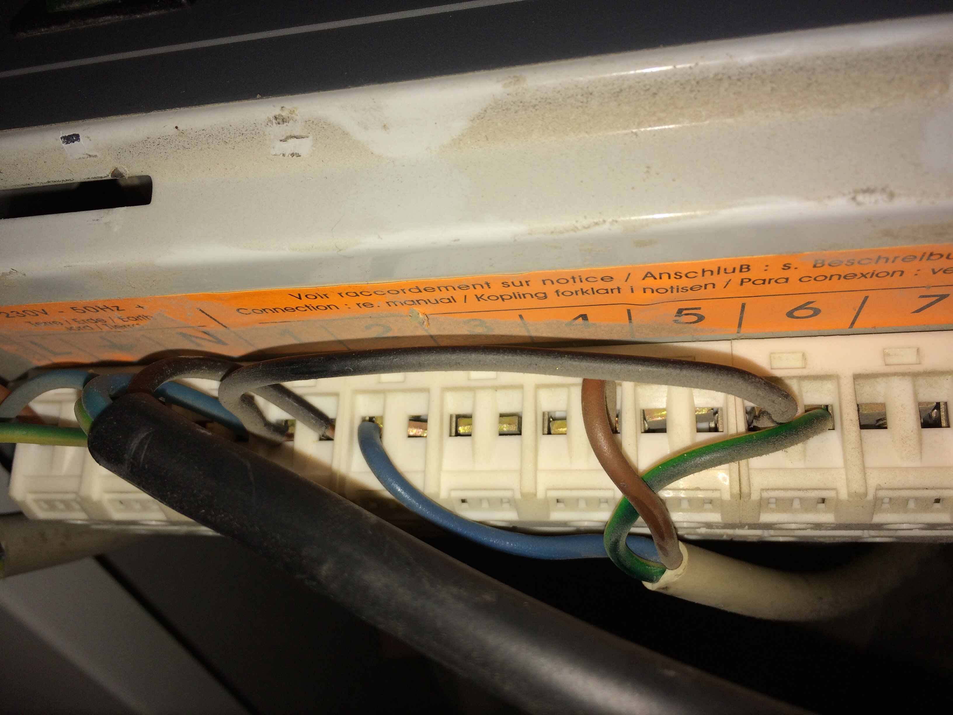 Quand je ragarde le cable d'alimentation, je me rends compte qu'un des fils est branché sur le bornier 1 a la place du bornier L completement a gauche.