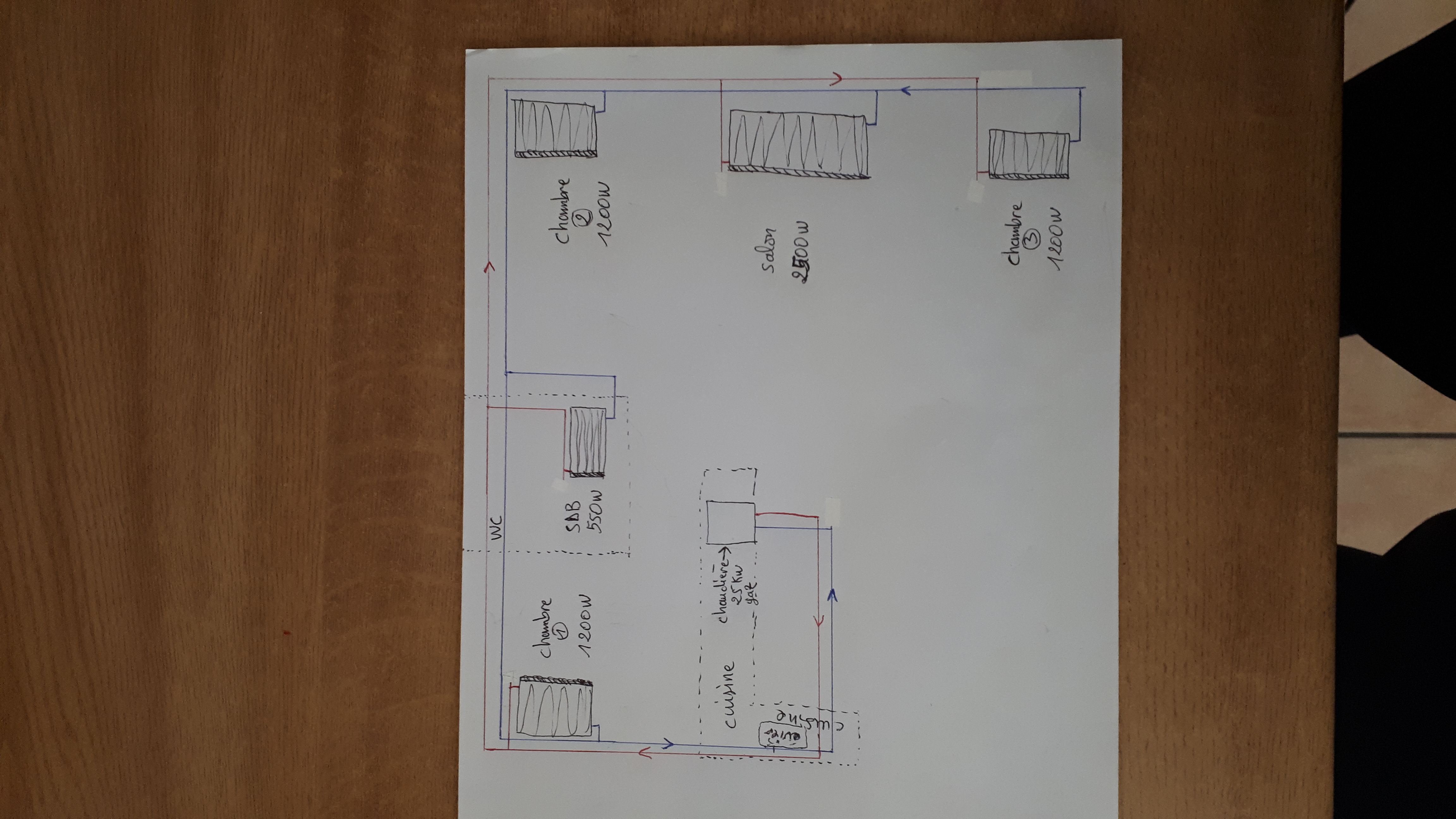 Ensuite départs et retours en 16/20 jusqu'à l'avant dernier radiateur.