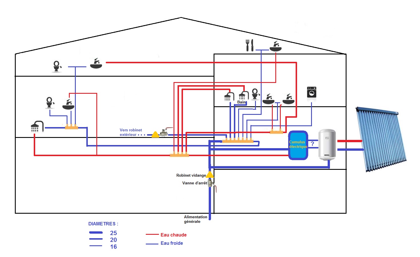 3- Les douches et bains doivent être alimentés en 16/20 et les éviers, lavabos, WC, machines à laver en 12/16, c'est exact?