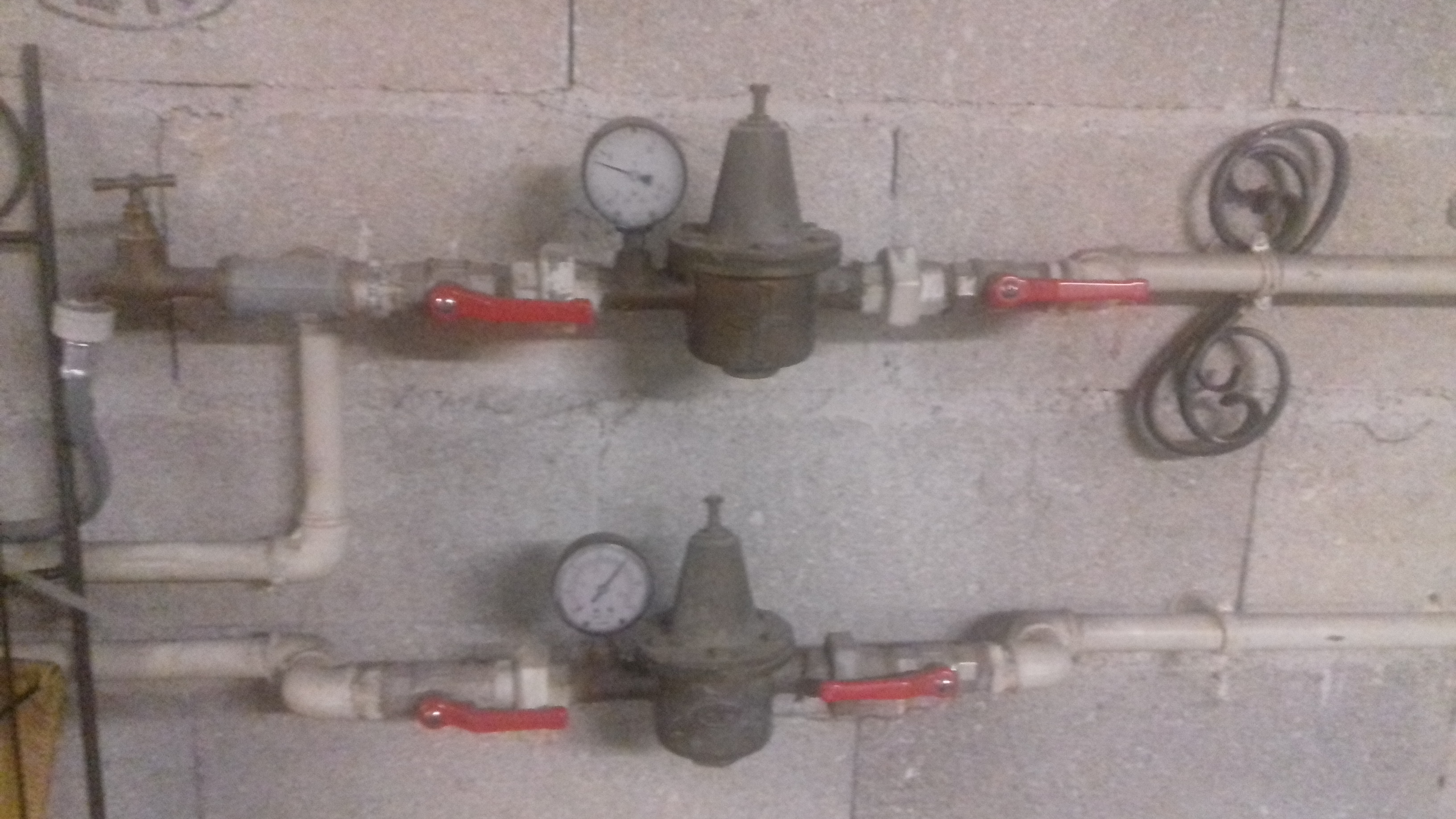 Le fameux détendeur. Il y en a deux car c'est une copro de deux foyers avec deux chaudières indépendantes.