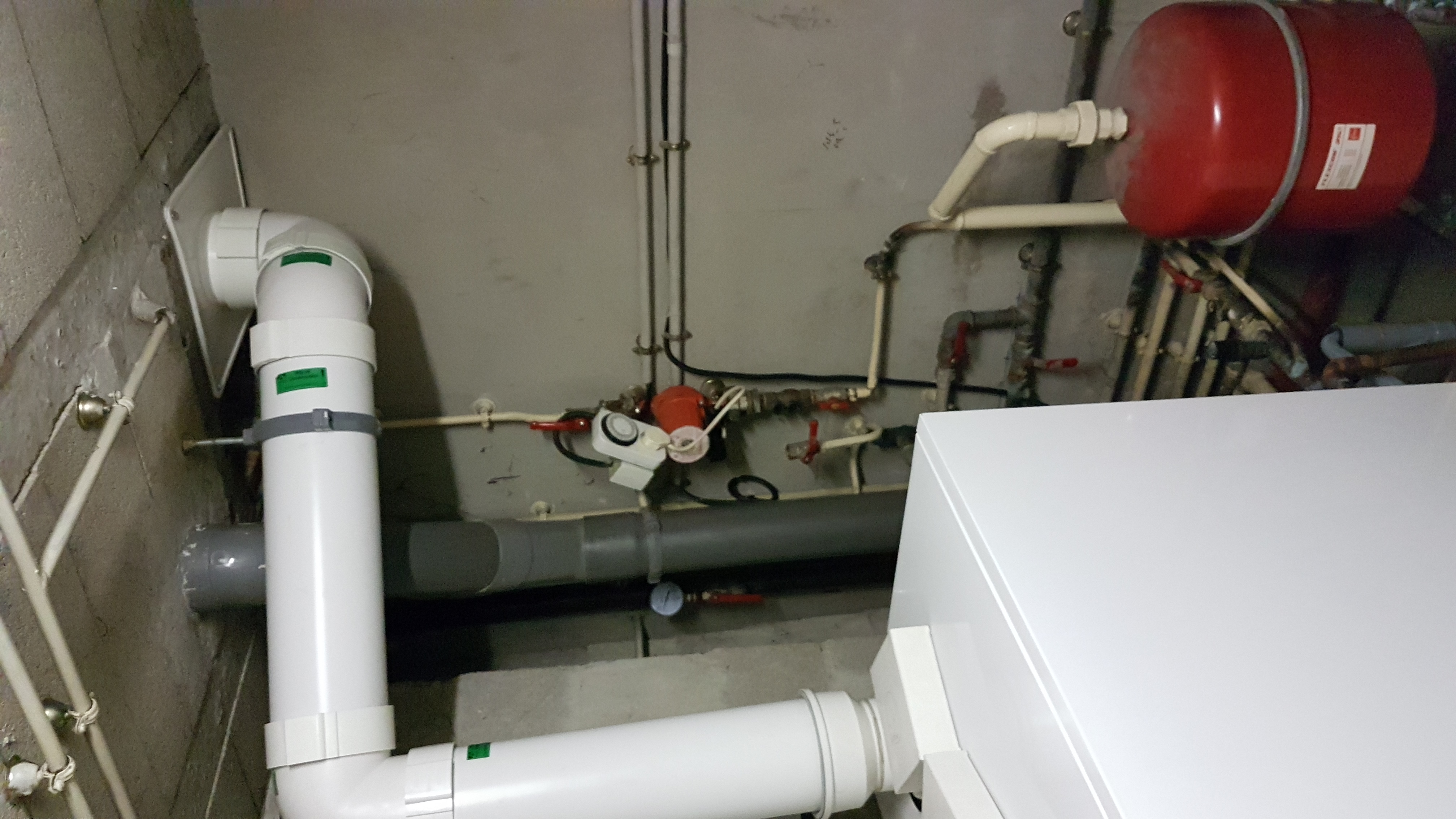 Sur l'image, j'ai entouré deux trucs. Lorsque sur le thermostat d'ambiance (qui évalue dans le salon si il faut chauffer ou non) indique un code erreur (5D), je dois descendre dans le garage et actionner la manette entourée en rouge pour que la pression remonte. Sur le vu-metre entouré en haut, la pression monte rapidement, une fois que ça atteint le 3 je referme la manette et ça se stabilise à 2,5.
