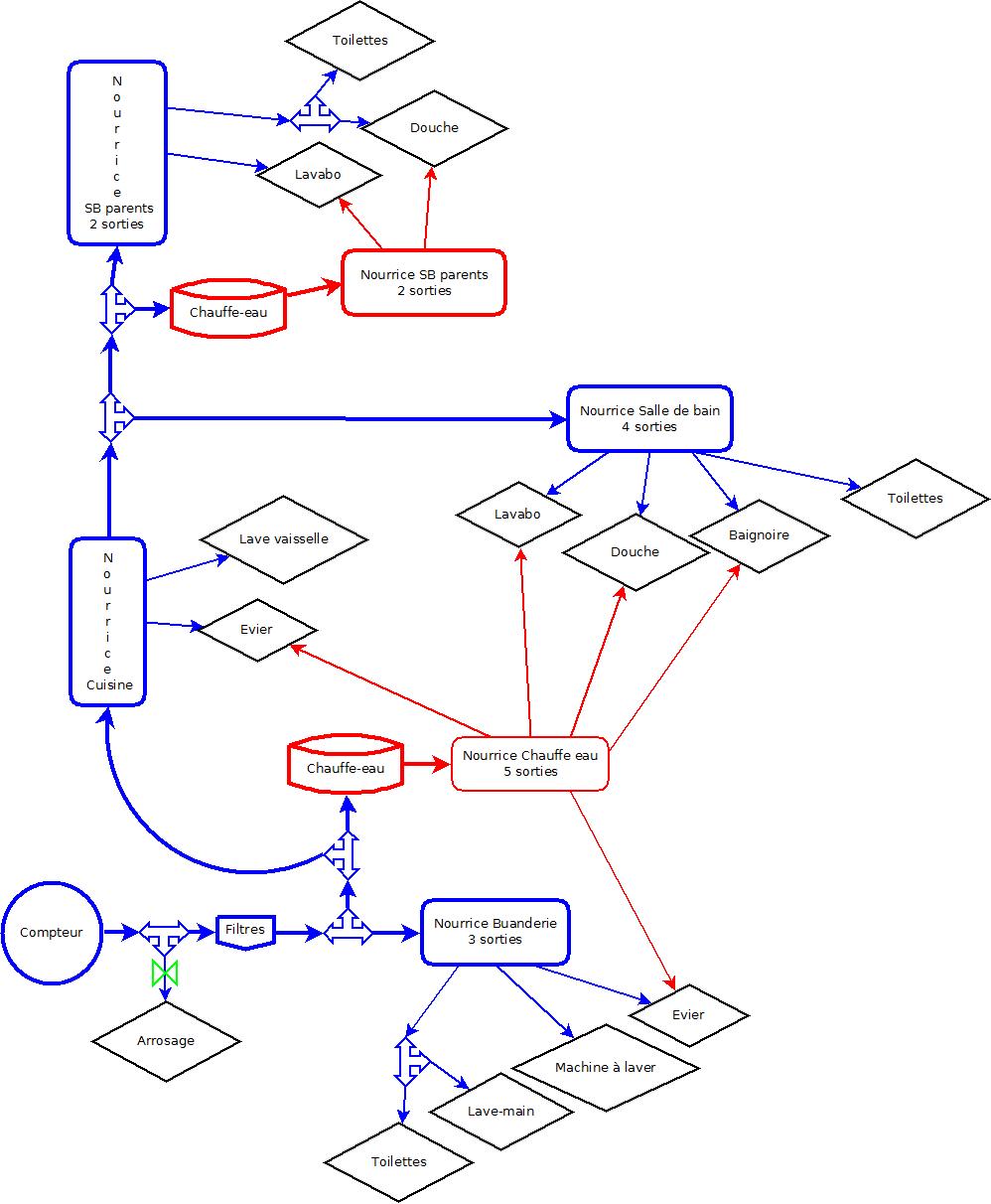 Dans le schéma vous verrez qu'il est possible de réaliser plusieurs branches en utilisant une nourrice, puis régler chaque point individuellement ou même le condamner.