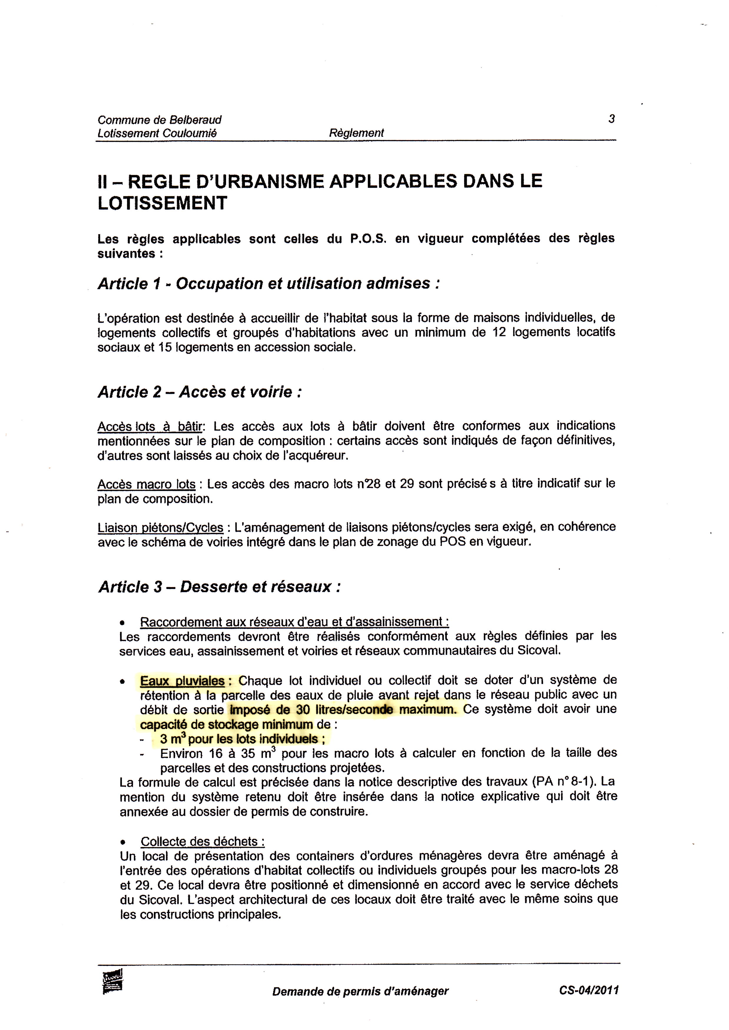 avec un débit de 30 litres /seconde et une capacité de stockage 3 m3 minimum selon la règle du lotissement.