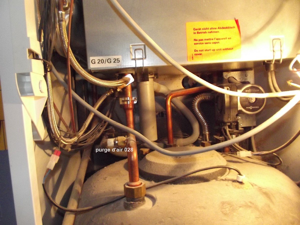 --à partir de la purge d’air 028 (photo circulateur-tube003.jpg), il est vrai reliée aux condensats, mais qui n’est pas sur le retour chauffage et qui, d’après mon guide de maintenance sert à purger l’air de la chaudière (en même temps que le robinet de remplissage –introuvable- du retour chauffage est ouvert) ?