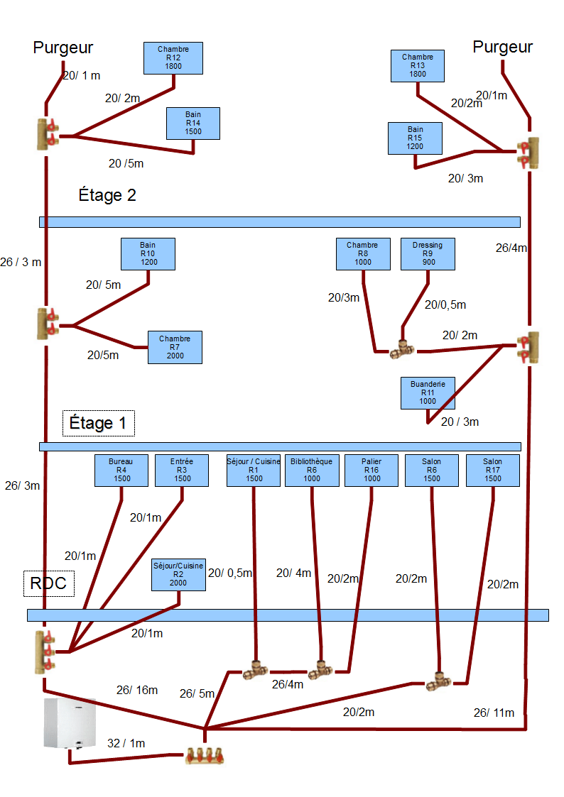 Le réseau sera en multicouche, radiateur alu, sauf pour 5 ancien (plisse) qui seront conservés