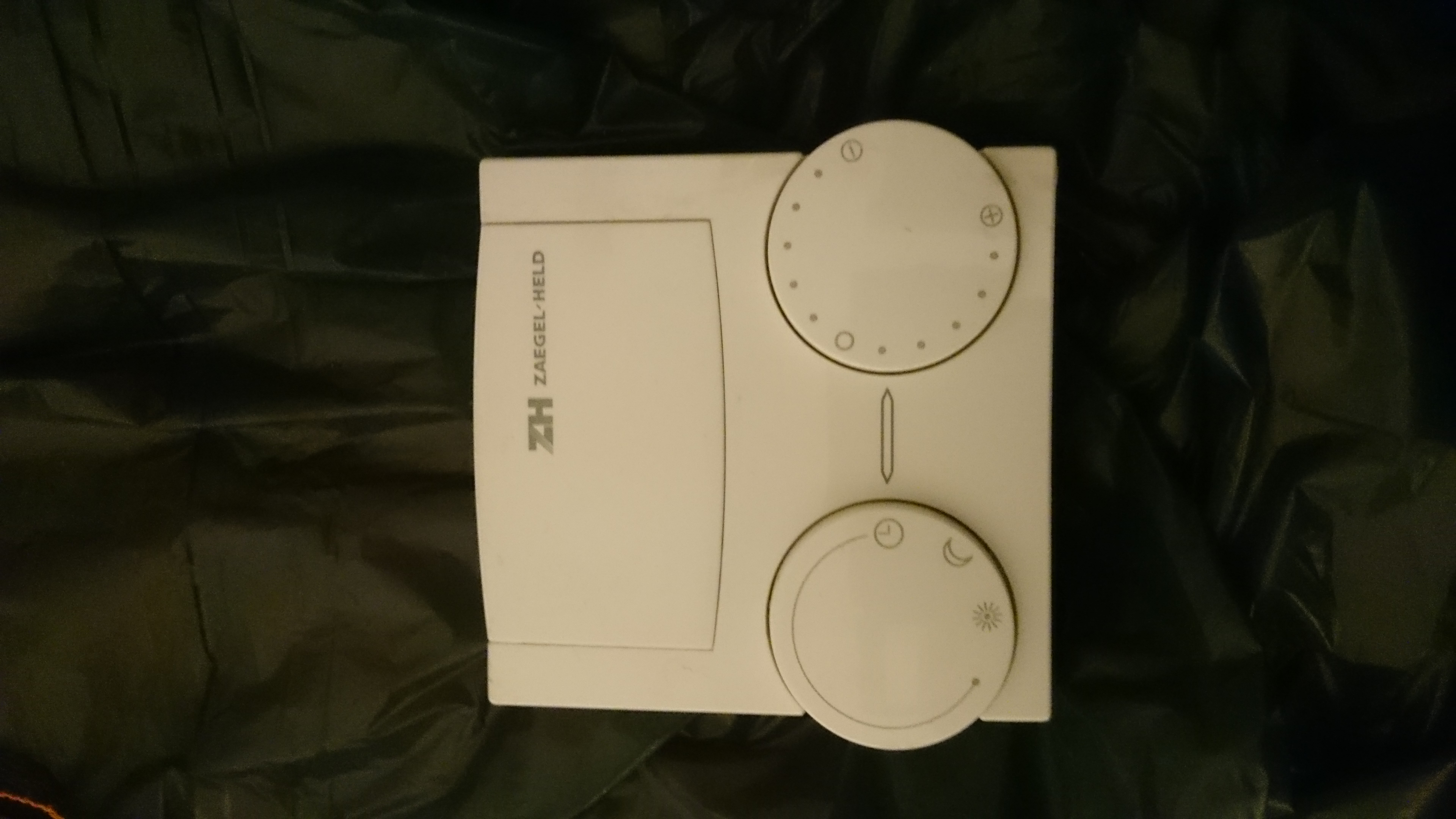 La chaudière est équipée d'un ballon d'eau chaude, d'une sonde extérieur et d'un thermostat basic d'intérieur à deux roues, voir pièce jointe, (de marque ZH). Une avec trois modes (soleil, lune et programme) et la deuxième la température à choisir.
