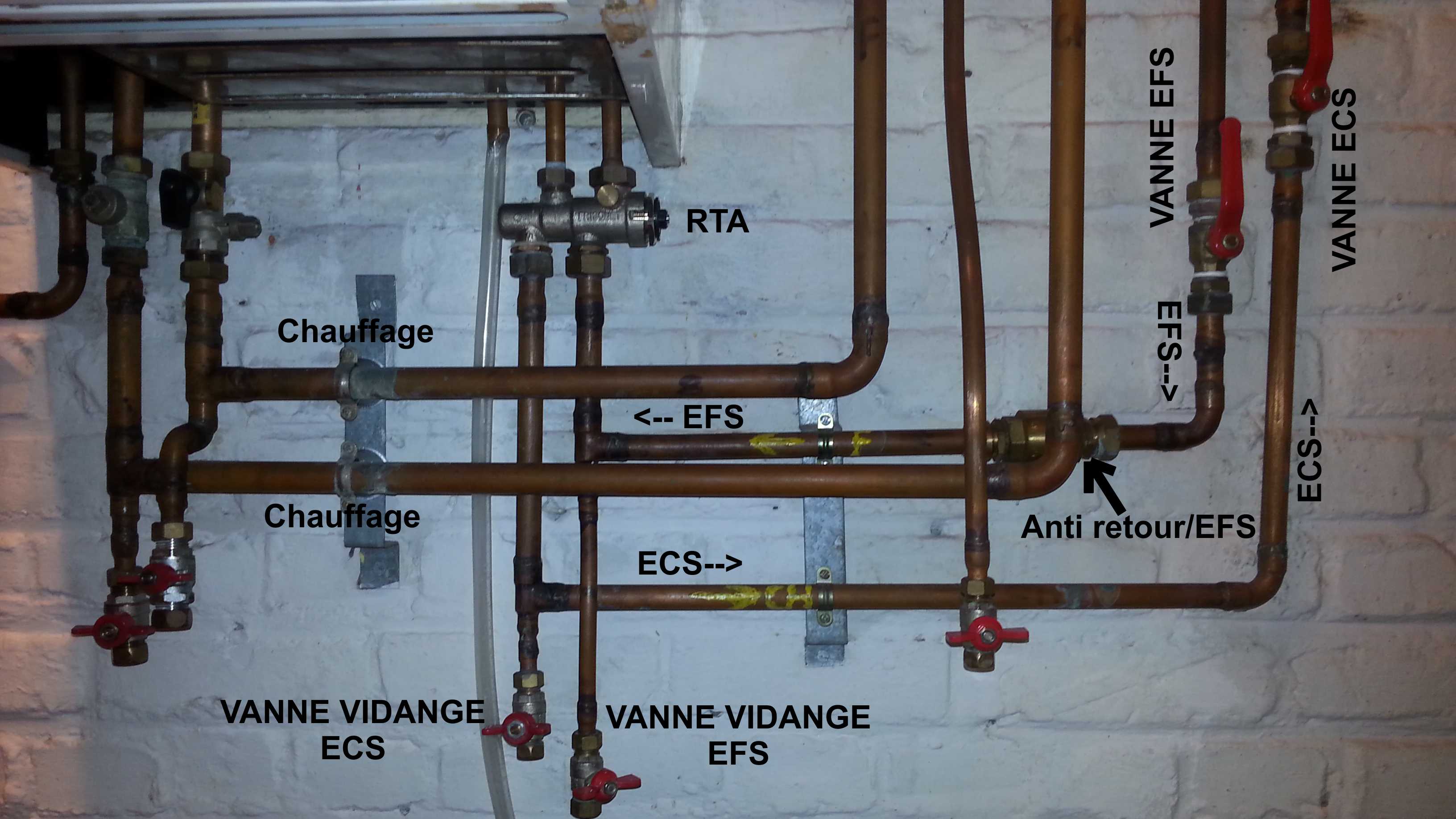 J’ai posé dans un second temps un autre anti retour, juste avant l’entrée de EFS de la chaudière, pour le cas éventuel de retour d’eau chaude dans le circuit froid depuis le RTA, mais toujours le même problème.