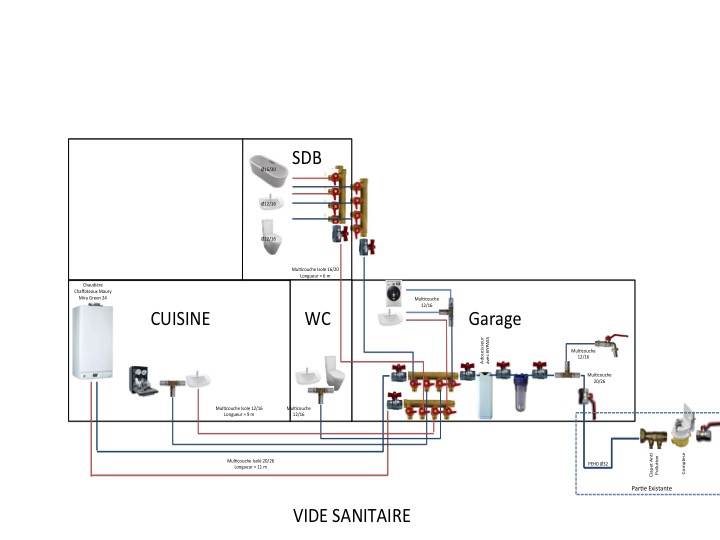 Ma principale crainte est la distance entre la chaudière, qui ce trouve dans la cuisine et la nourrice qui va servir à distribuer ECS.